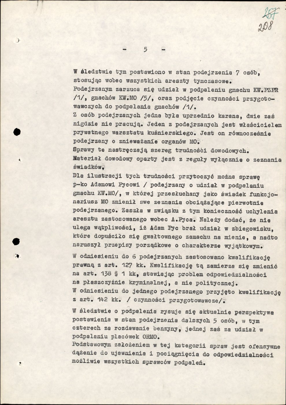 postępowań przygotowawczych wszczętych w związku z zajściami w dniach 17 i 18 grudnia 1970 r. (stan na dzień 27 stycznia 1971 r.)