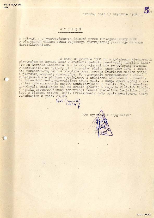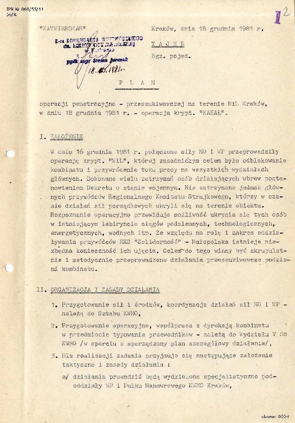 Materiały Wojewódzkiego Stanowiska Kierowania KWMO w Krakowie dotyczące operacji penetracyjno-poszukiwawczej krypt. "Kanał"