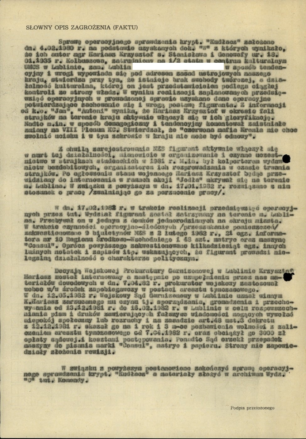 Meldunek operacyjny dot. Krzysztofa Hariasza (nr skanu 31-33) Meldunek operacyjny dot. Krzysztofa Hariasza (nr skanu 31-33) Meldunek operacyjny dot. Krzysztofa Hariasza (nr skanu 31-33)