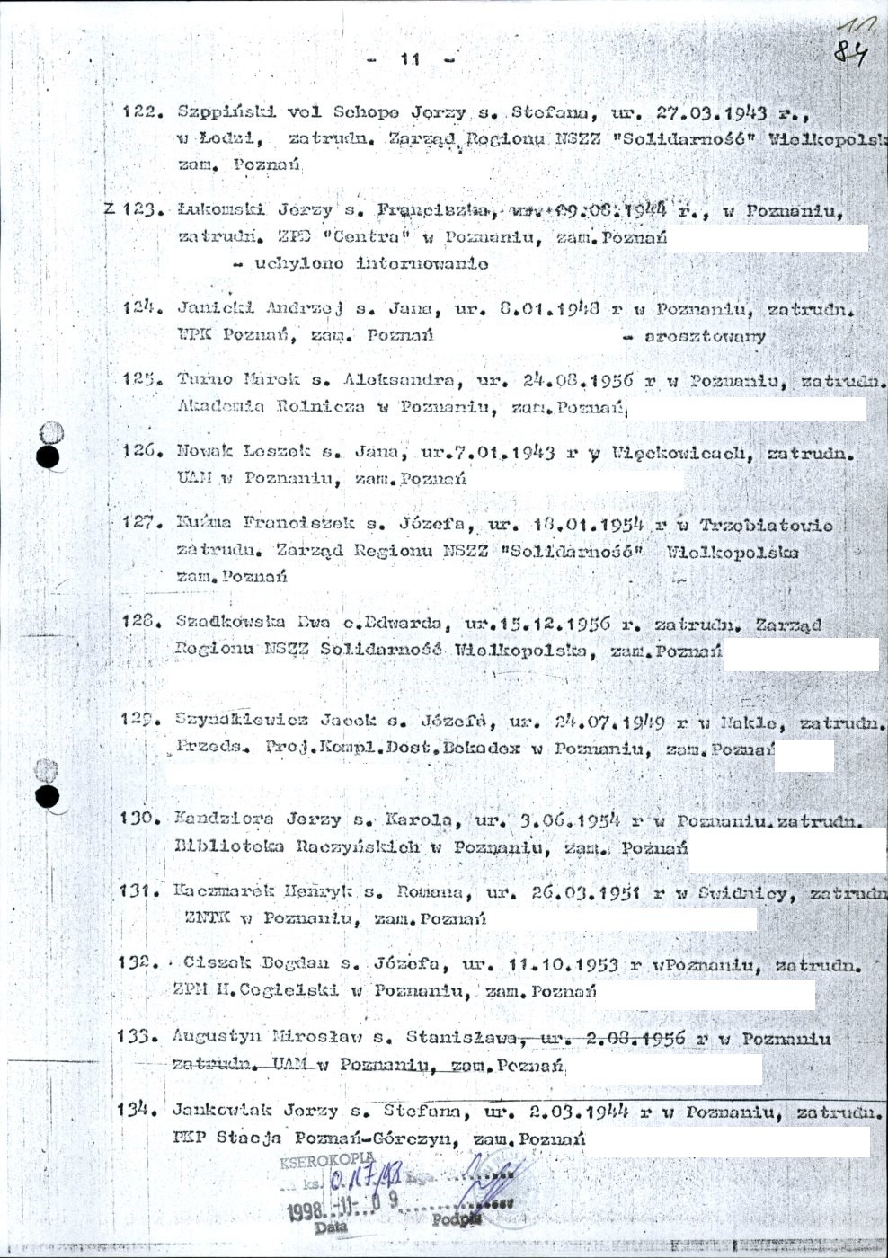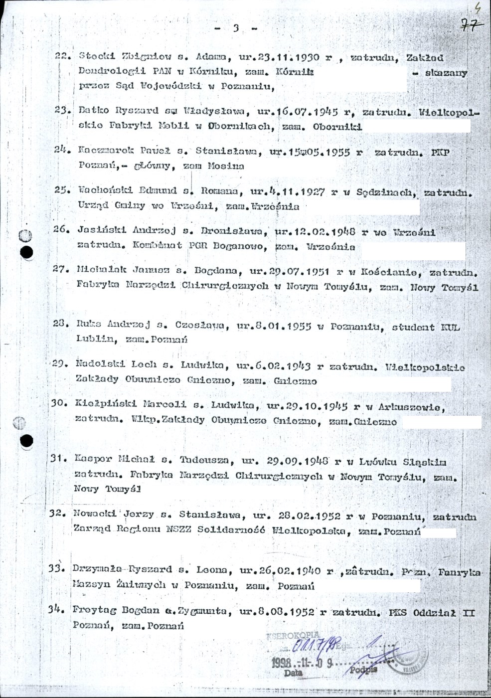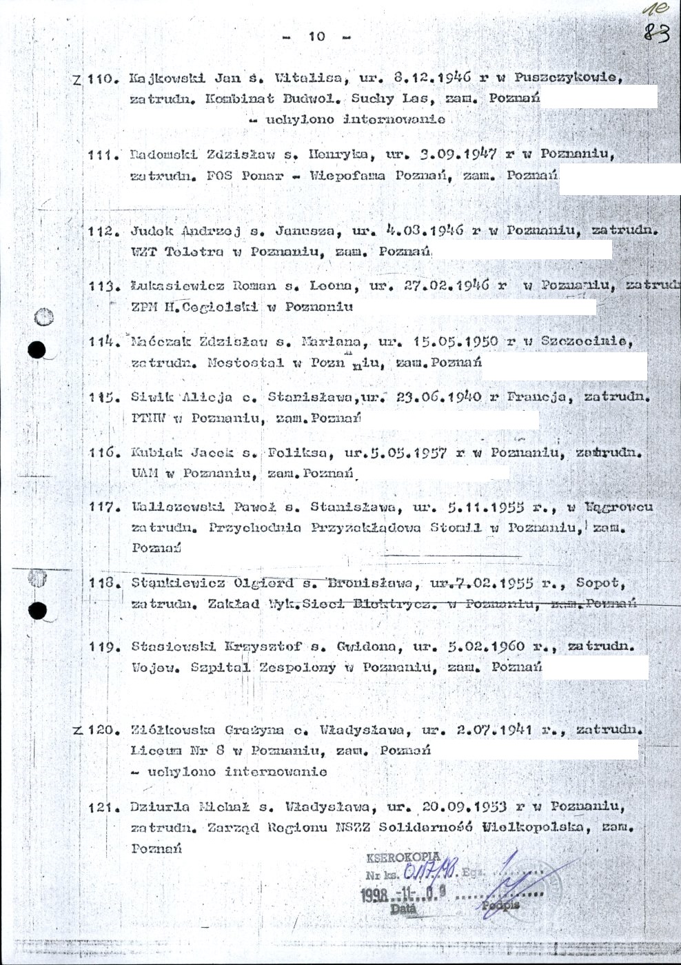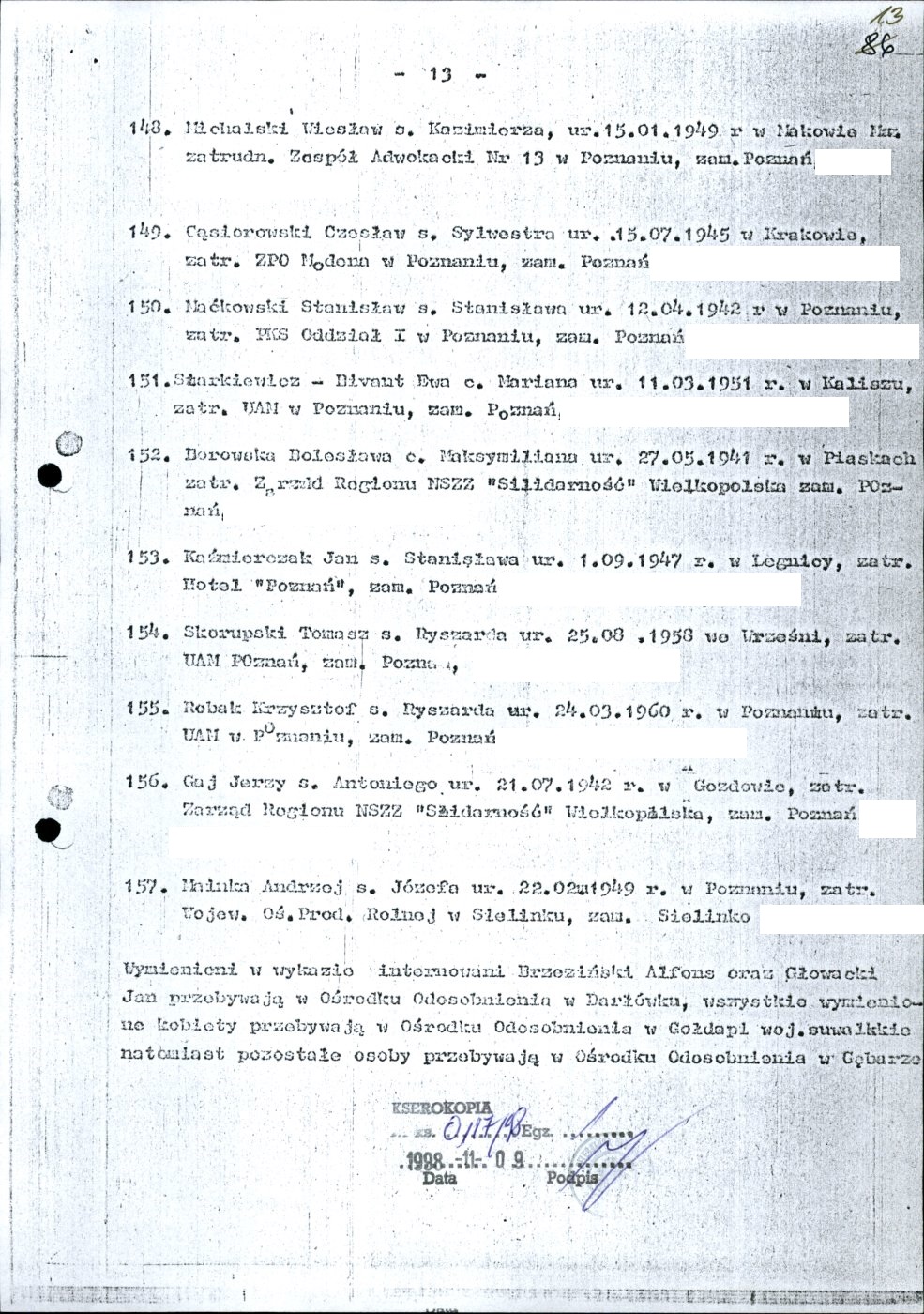 Kserokopia wykazu osób internowanych