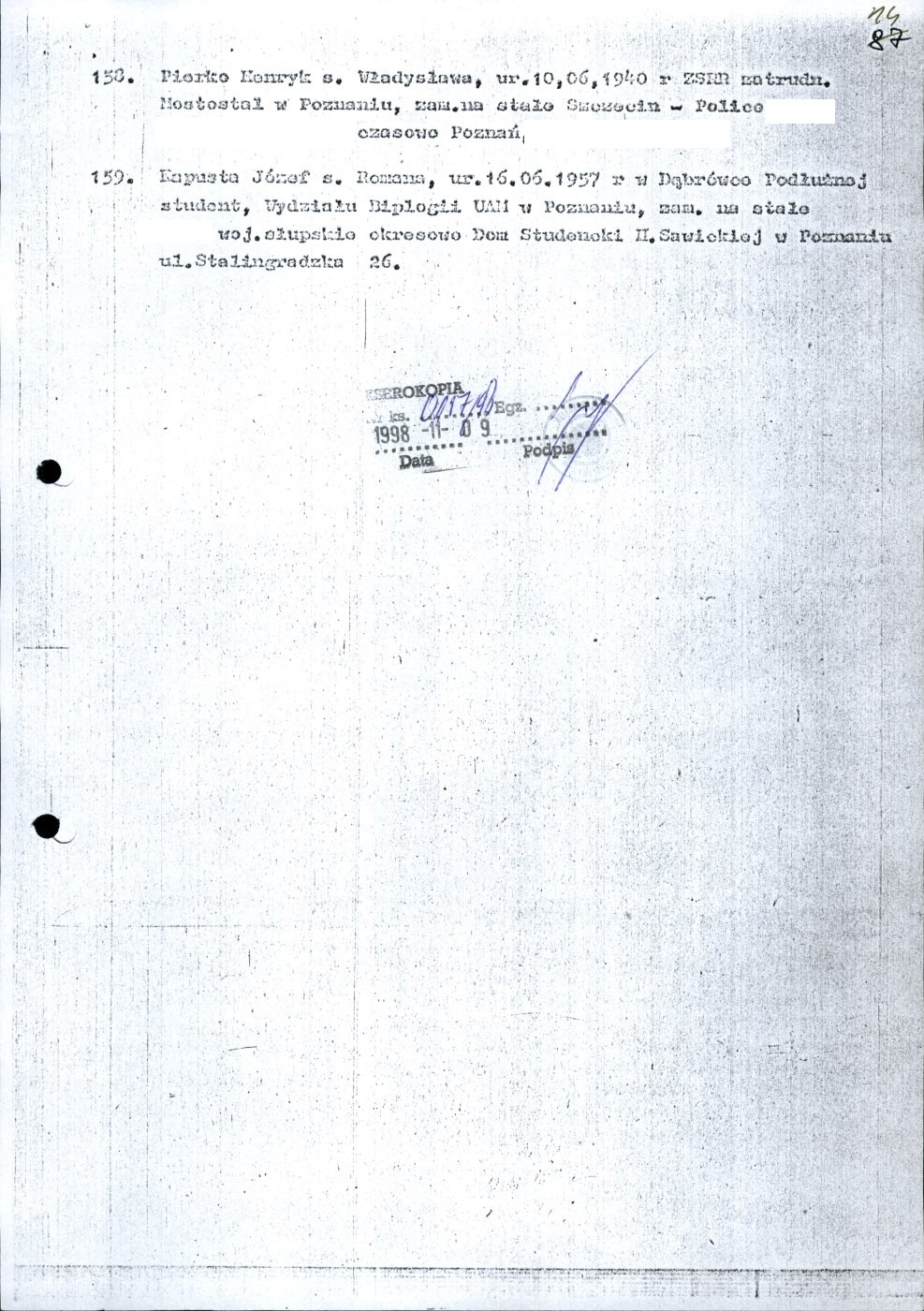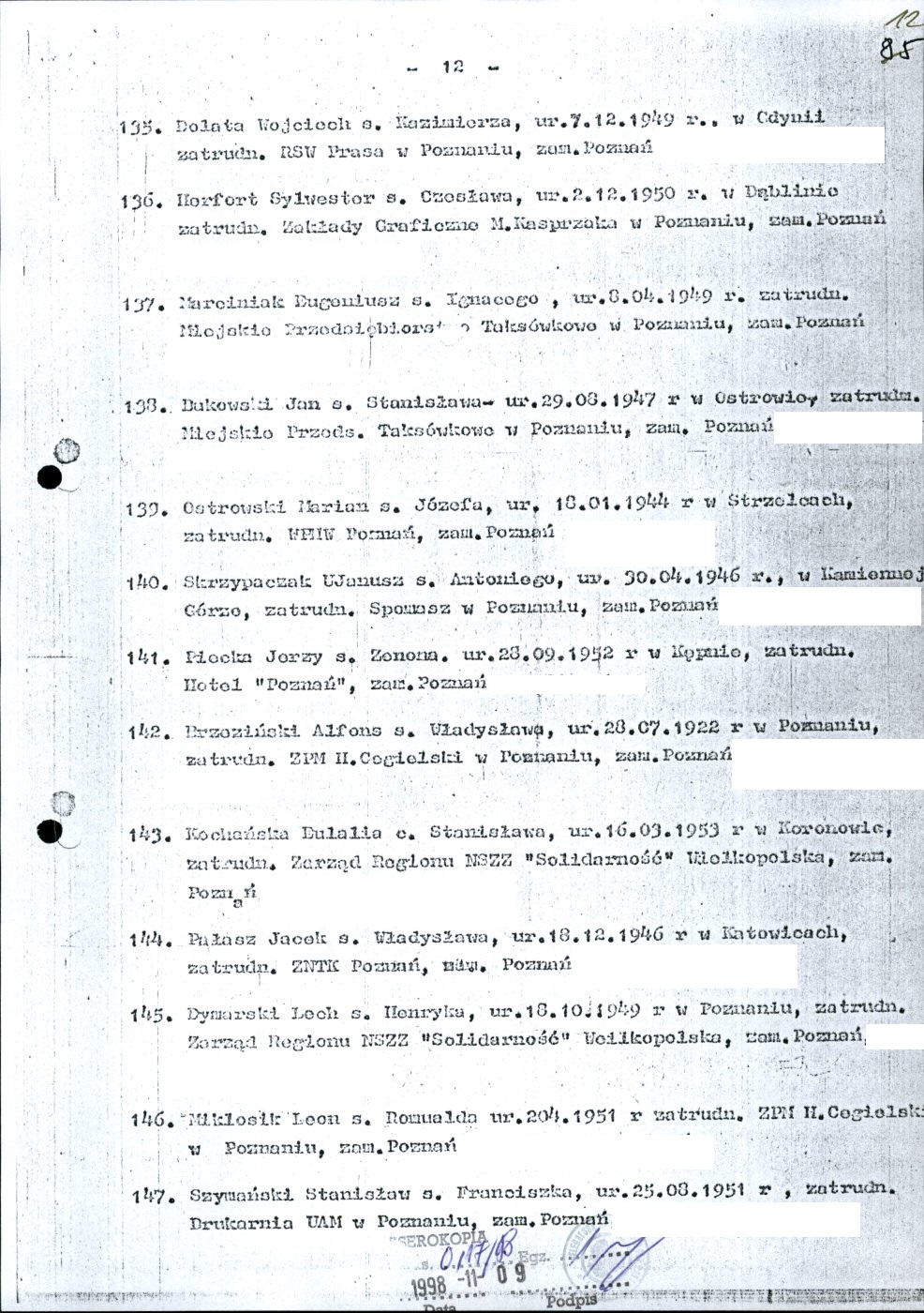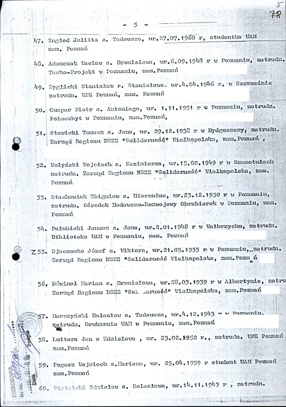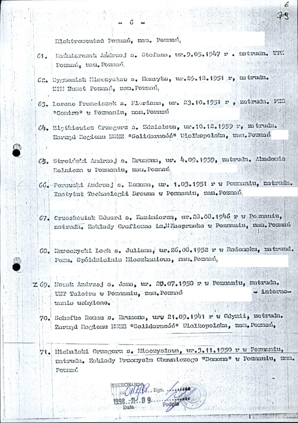 Kserokopia wykazu osób internowanych