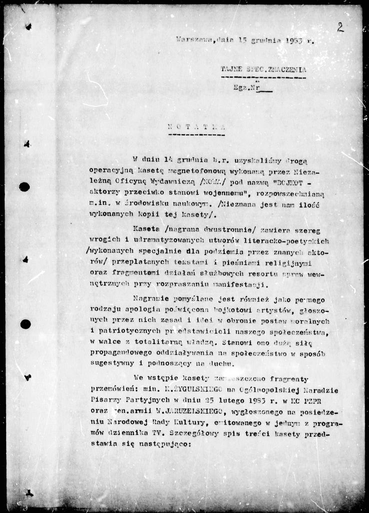 Pozyskanie drogą operacyjną kasety magnetofonowej przez NOWĄ "Bojkot-aktorzy przeciwko stanowi wojennemu" 15.12.1983 Pozyskanie drogą operacyjną kasety magnetofonowej przez NOWĄ "Bojkot-aktorzy przeciwko stanowi wojennemu" 15.12.1983 Pozyskanie drogą operacyjną kasety magnetofonowej przez NOWĄ "Bojkot-aktorzy przeciwko stanowi wojennemu" 15.12.1983