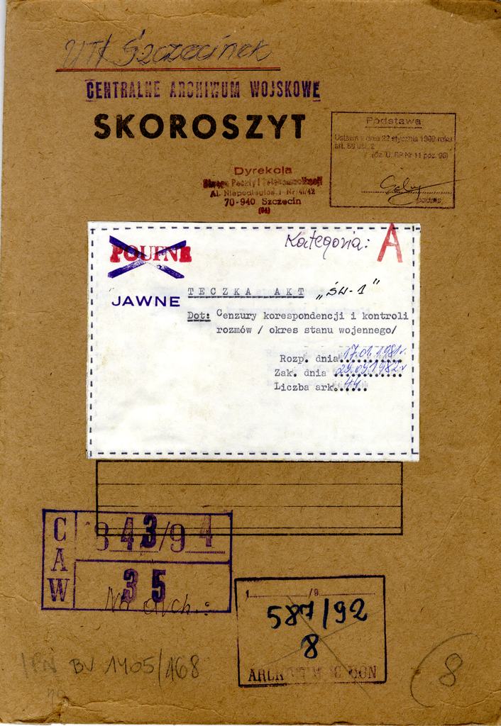 Teczka akt dot. Cenzury korespondencji i kontroli rozmów - okres stanu wojennego 17.12.1981 Teczka akt dot. Cenzury korespondencji i kontroli rozmów - okres stanu wojennego 17.12.1981 Teczka akt dot. Cenzury korespondencji i kontroli rozmów - okres stanu wojennego 17.12.1981 Teczka akt dot. Cenzury korespondencji i kontroli rozmów - okres stanu wojennego 17.12.1981