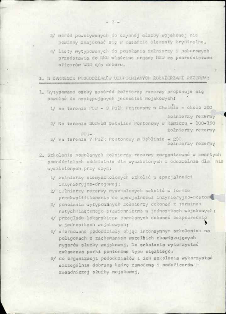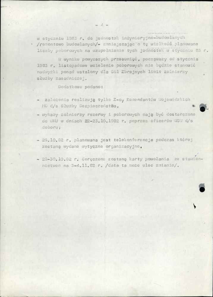 Założenia organizacyjne dotyczące dodatkowego sformułowania pododdziałów szkoleniowych przekazane szefom sztabu okręgów wojskowych w dniu 21.10.1982 r. przez zastępcę szefa Sztabu Generalnego Wojska Polskiego gen. dyw. Antoniego Jasińskiego