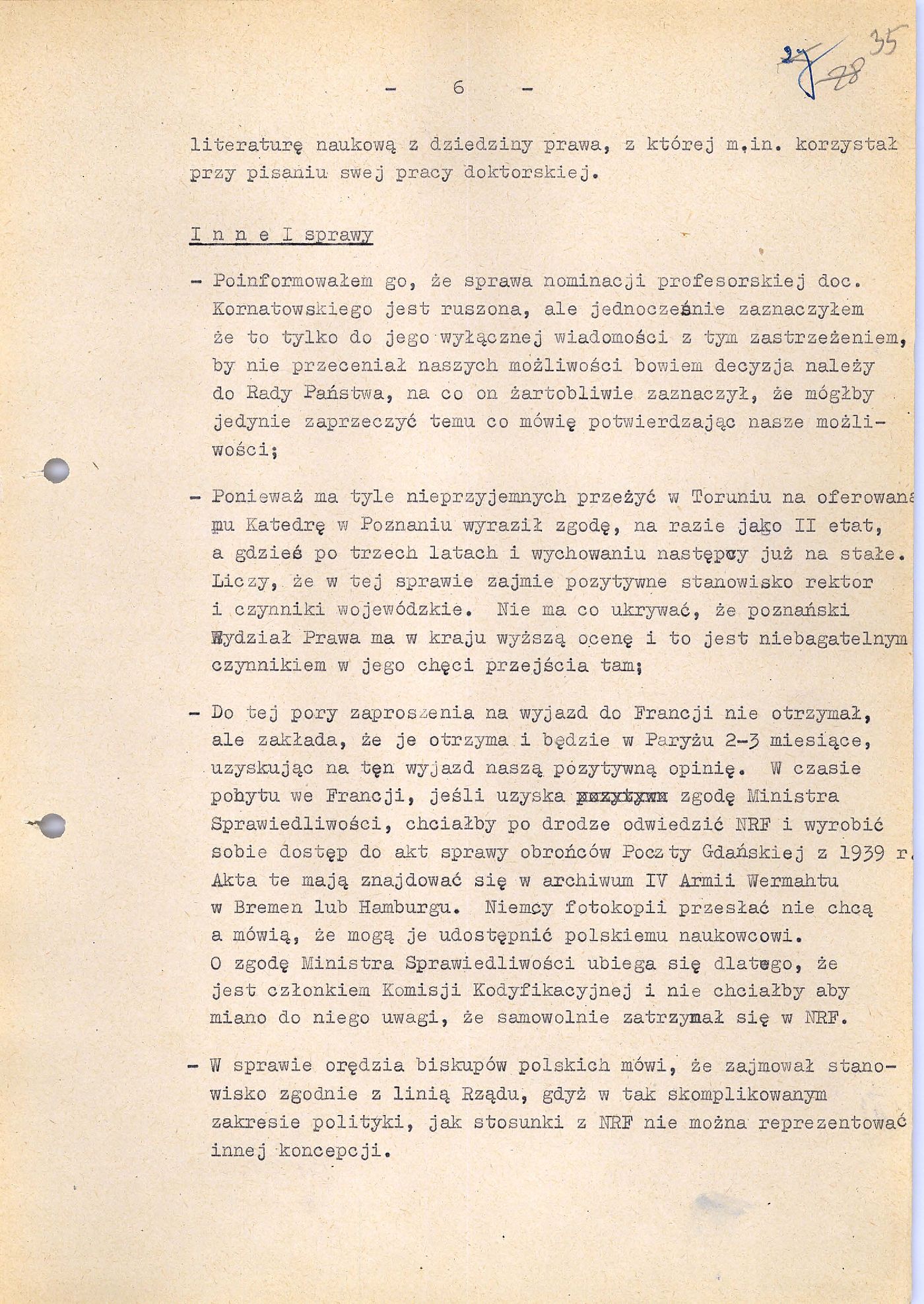 Notatka służbowa zastępcy naczelnika Wydziału III KW MO w Bydgoszczy