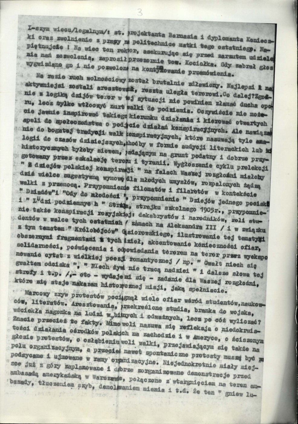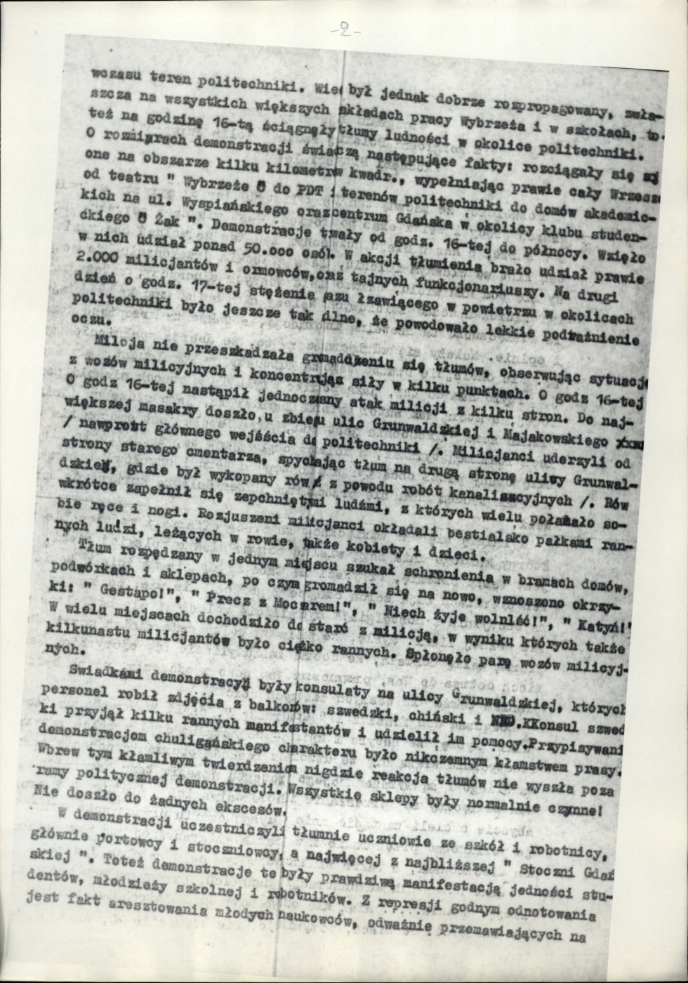 z opisem wydarzeń marcowych w Gdańsku. Pomimo wszczęcia śledztwa, autora listu nie ustalono. Ze zbiorów AIPN Gd (sygn. IPN Gd 75/17)