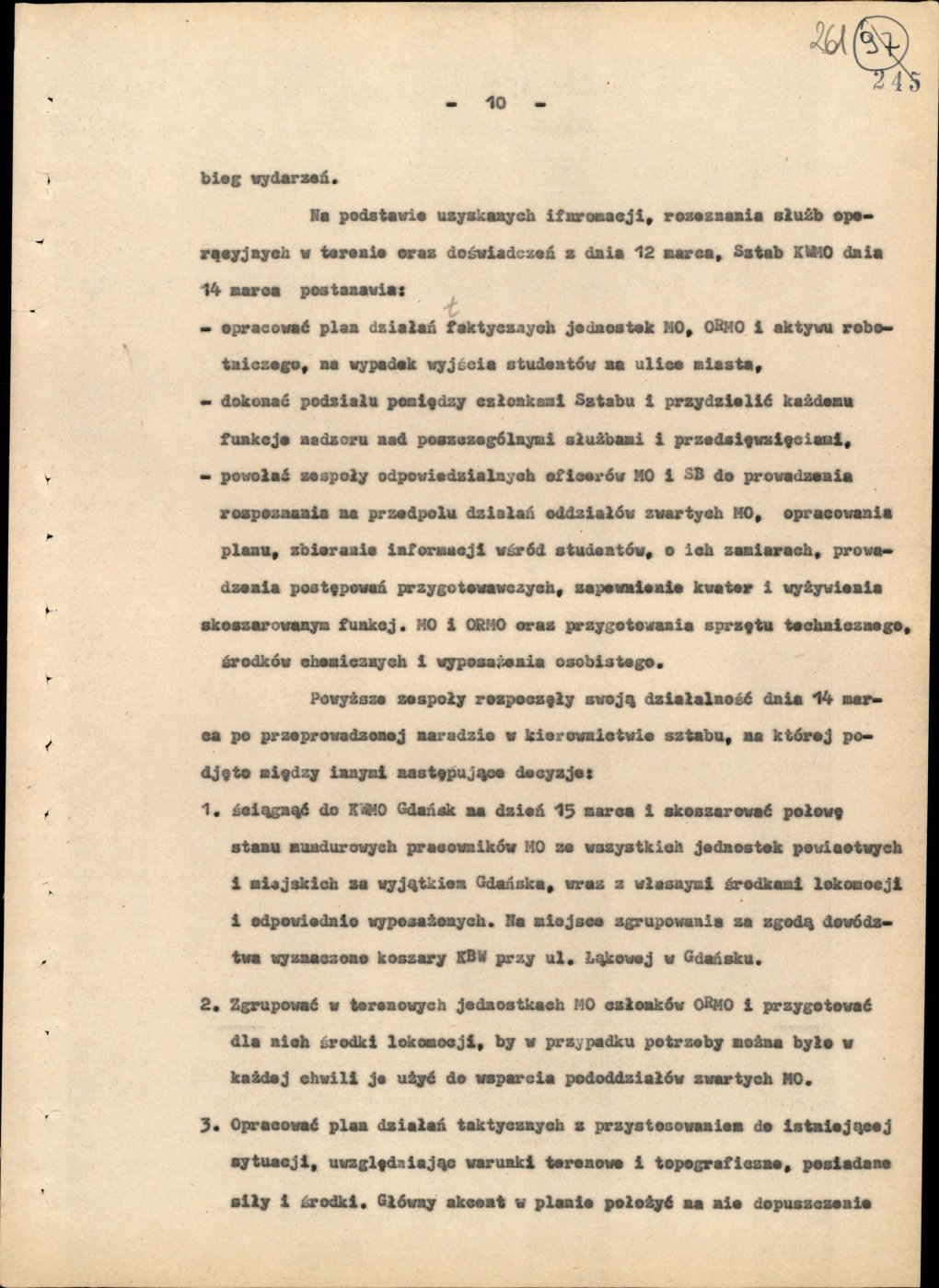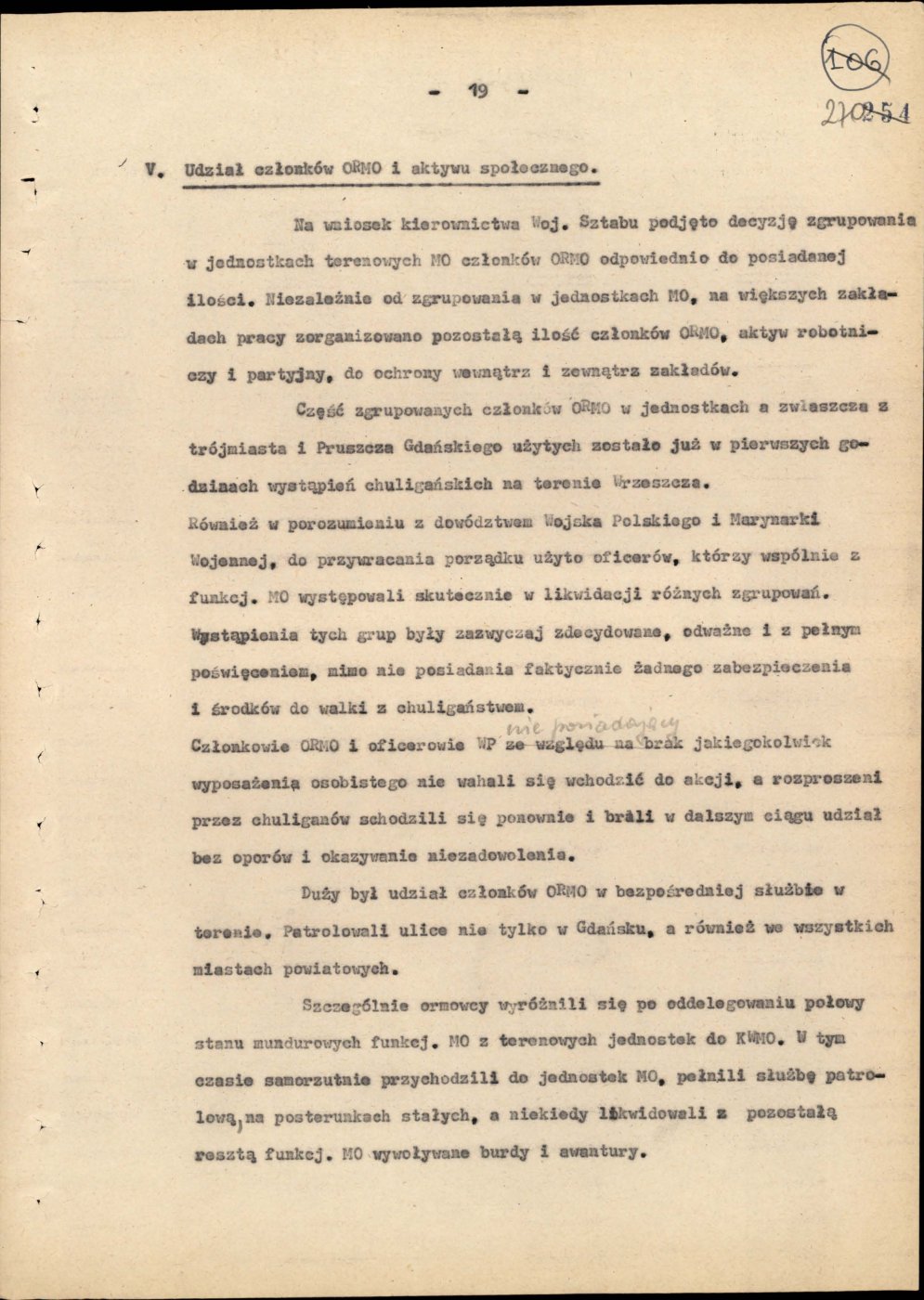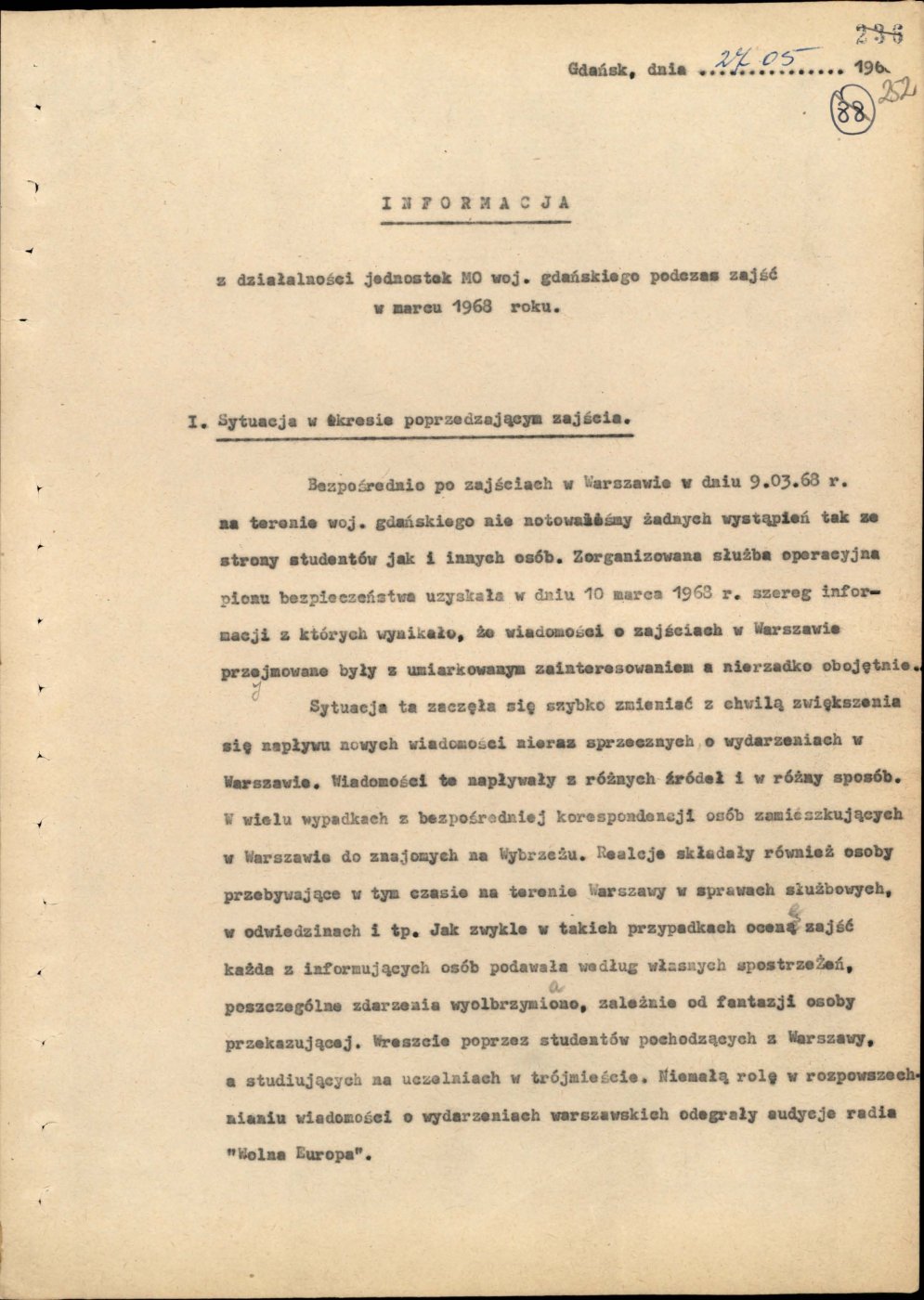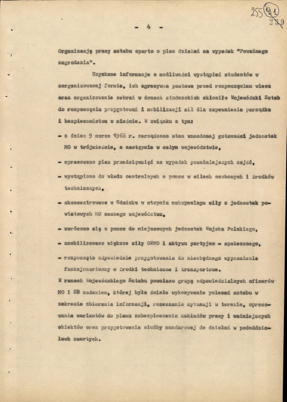 Informacja opisująca działania jednostek Milicji Obywatelskiej województwa gdańskiego