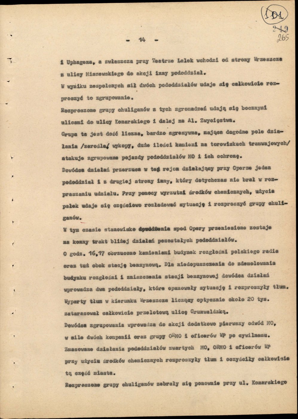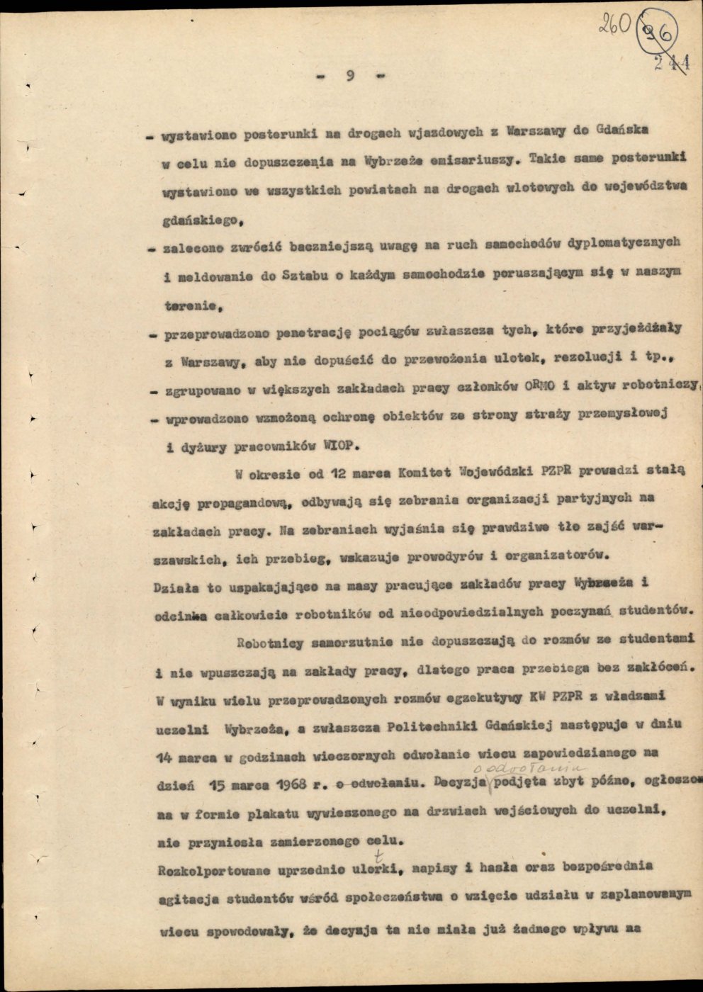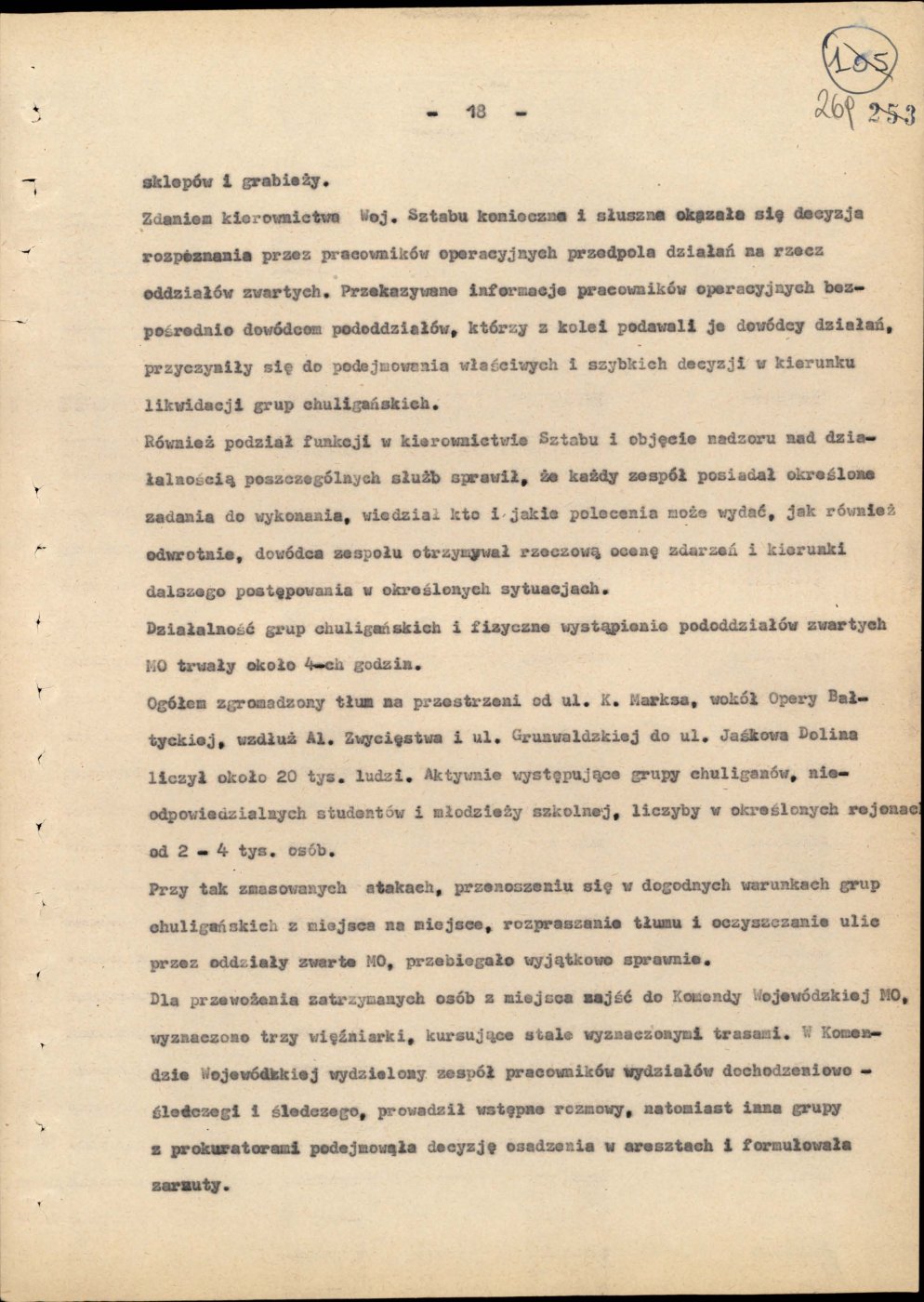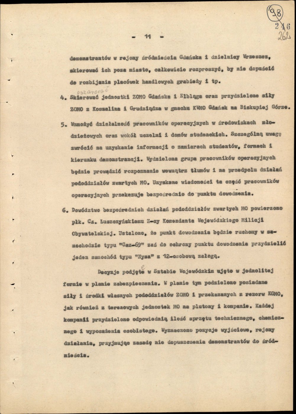 Informacja opisująca działania jednostek Milicji Obywatelskiej województwa gdańskiego