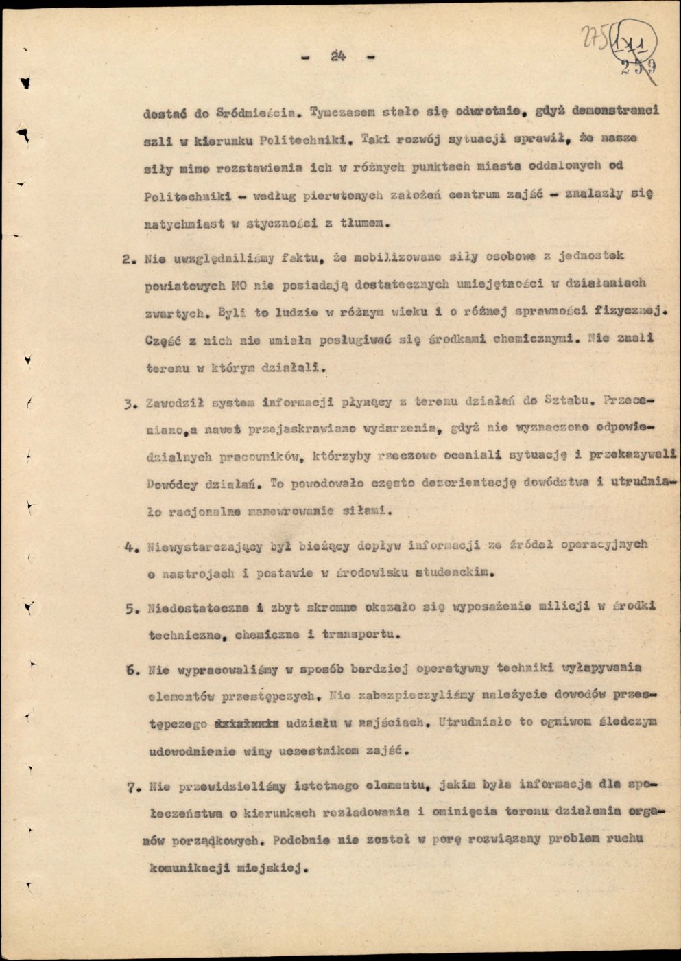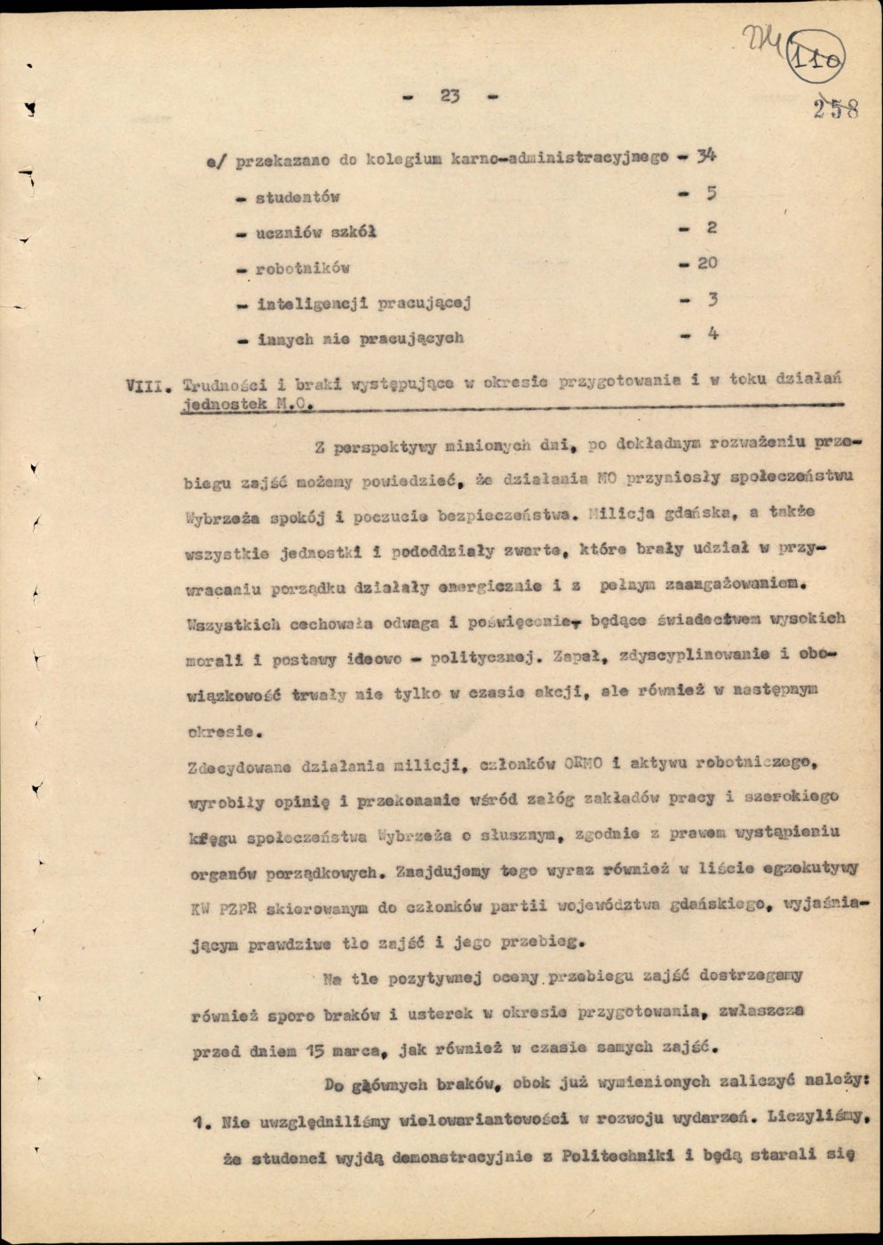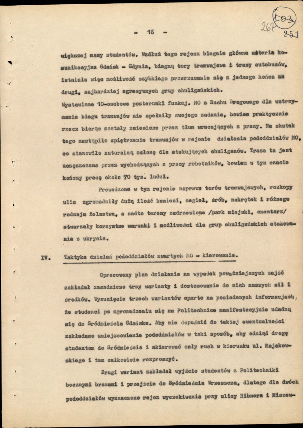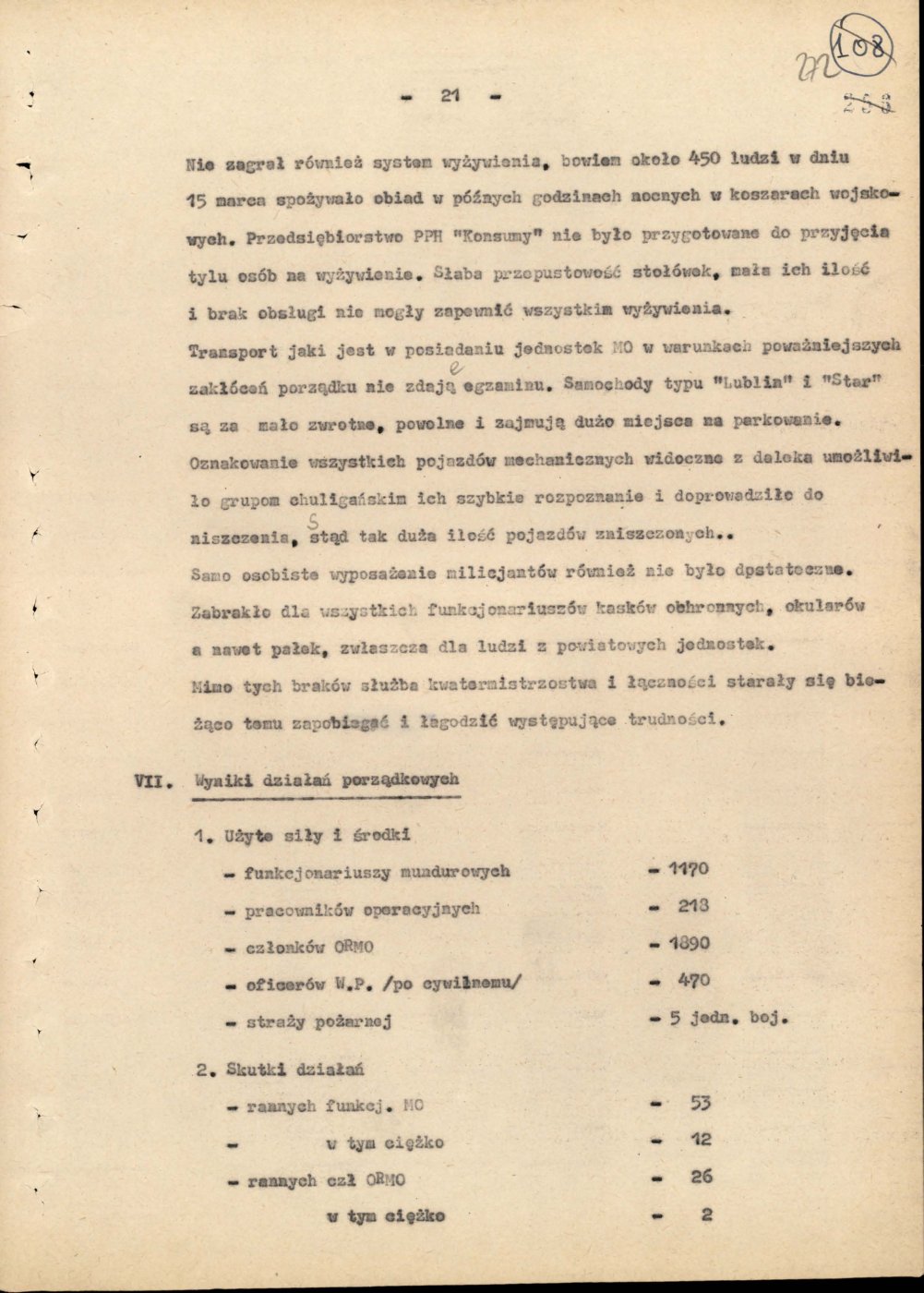 Informacja opisująca działania jednostek Milicji Obywatelskiej województwa gdańskiego