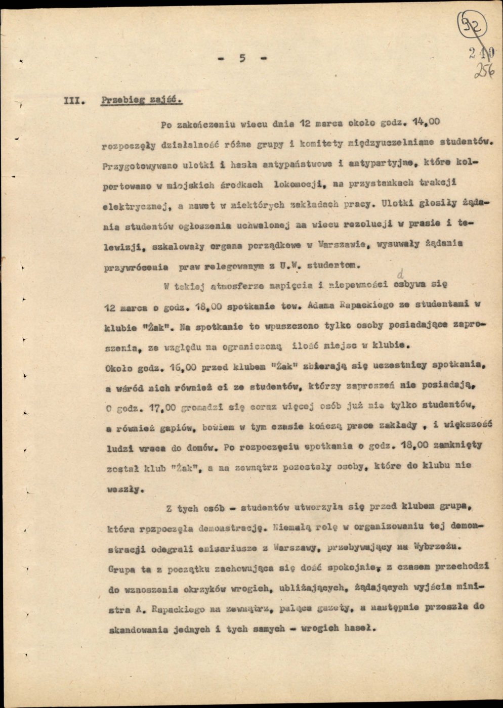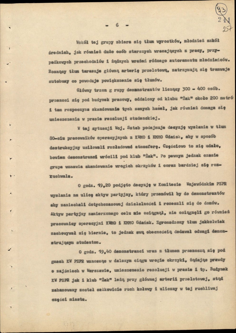 podczas likwidowania demonstracji i zamieszek w marcu 1968 r. w Trójmieście. Ze zbiorów AIPN Gd (sygn. IPN Gd 05/41 t. 1)