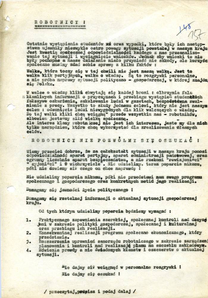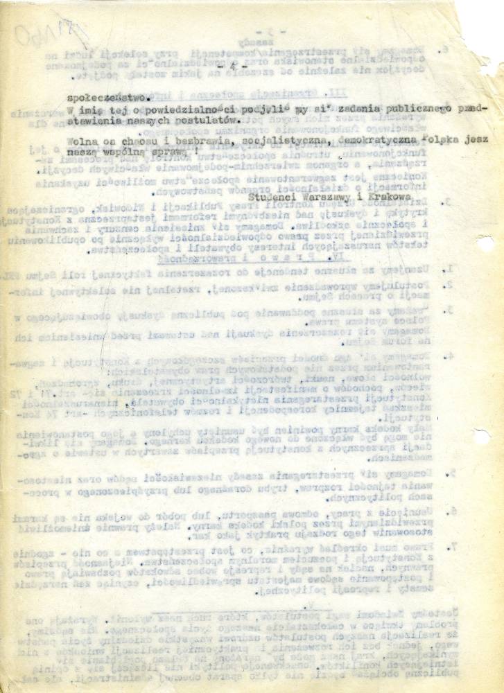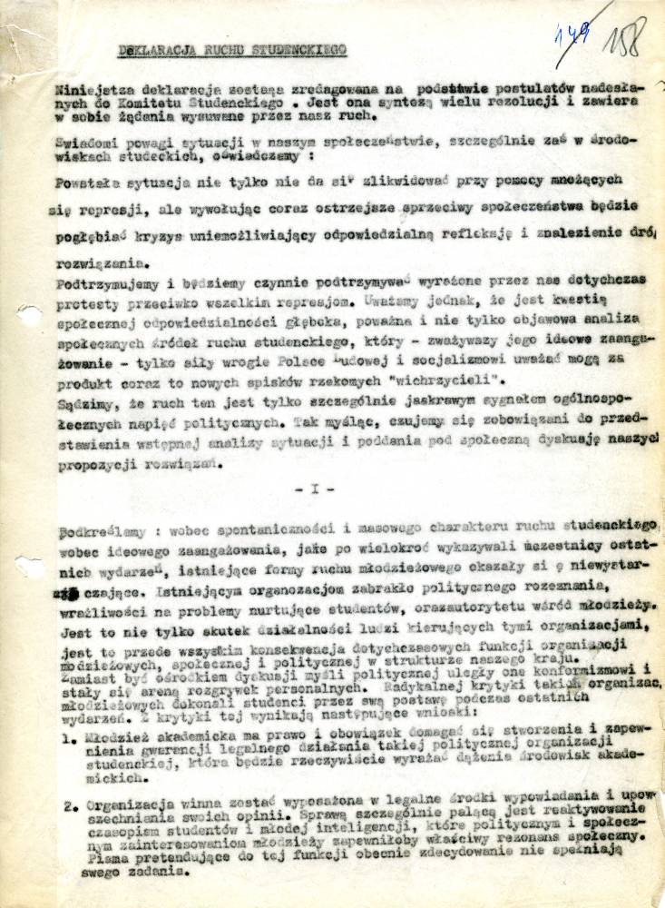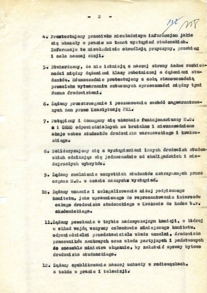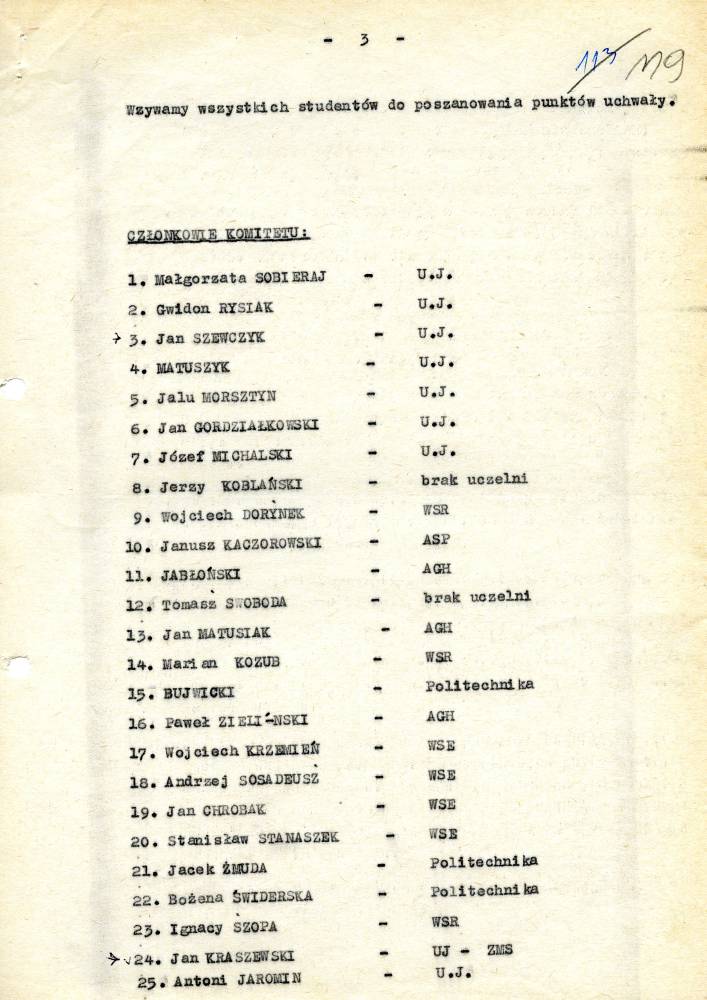 Maszynopis uchwały Komitetu wyłonionego przez studentów uczelni Krakowa na wiecu w dniu 13 marca 1968 r. w obecności rektora i innych władz UJ Maszynopis uchwały Komitetu wyłonionego przez studentów uczelni Krakowa na wiecu w dniu 13 marca 1968 r. w obecności rektora i innych władz UJ Maszynopis uchwały Komitetu wyłonionego przez studentów uczelni Krakowa na wiecu w dniu 13 marca 1968 r. w obecności rektora i innych władz UJ Maszynopis uchwały Komitetu wyłonionego przez studentów uczelni Krakowa na wiecu w dniu 13 marca 1968 r. w obecności rektora i innych władz UJ Apel do robotników - autor nieznany Maszynopis deklaracja ruchu studenckiego Maszynopis deklaracja ruchu studenckiego Maszynopis deklaracja ruchu studenckiego Materiały operacyjne Wydziału III WUSW w Krakowie