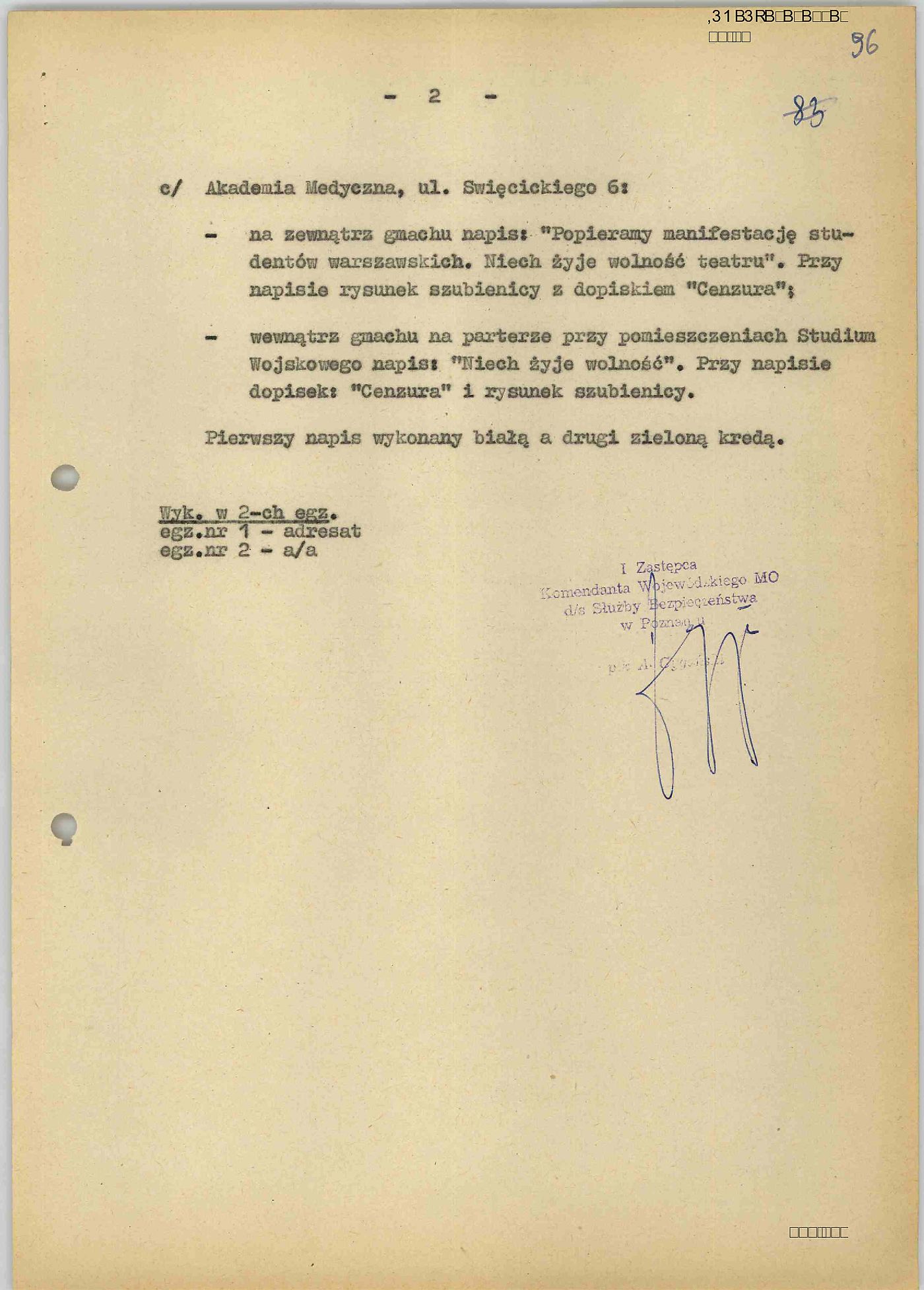 płk. Alojzego Cygańskiego z dn. 11.03.1968 r. do I Sekretarza KW PZPR w Poznaniu Jana Szydlaka z przedstawieniem danych odnośnie zamieszczania oraz kolportażu treści antypaństwowych w poznańskim środowisku akademickim (IPN Po 06/16 t. 2, s. 95–96).