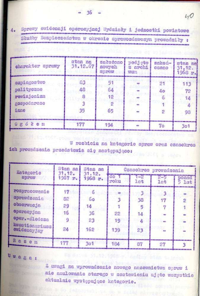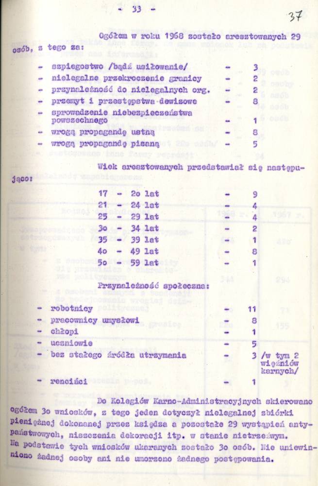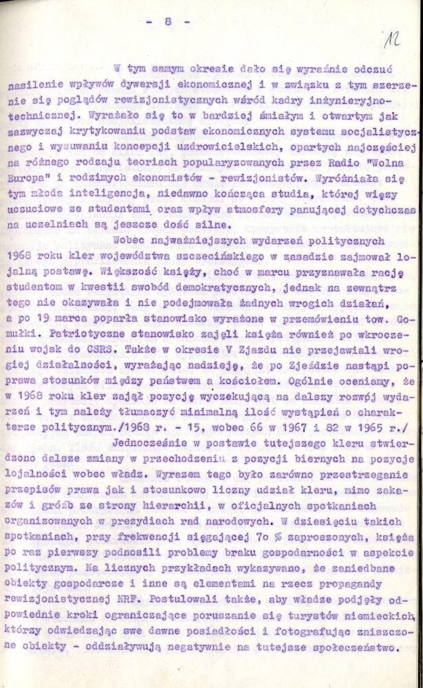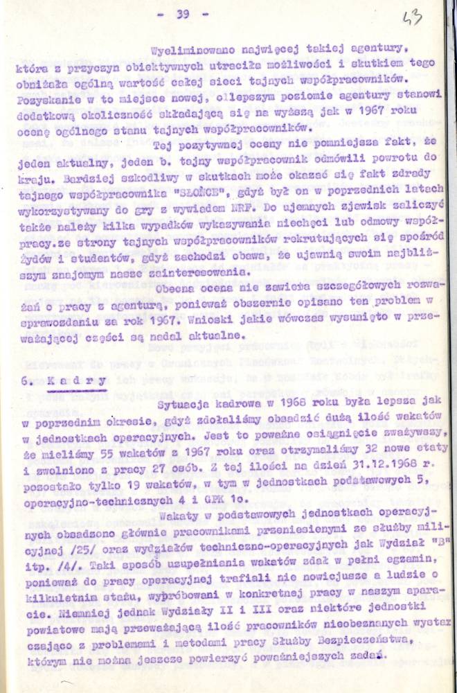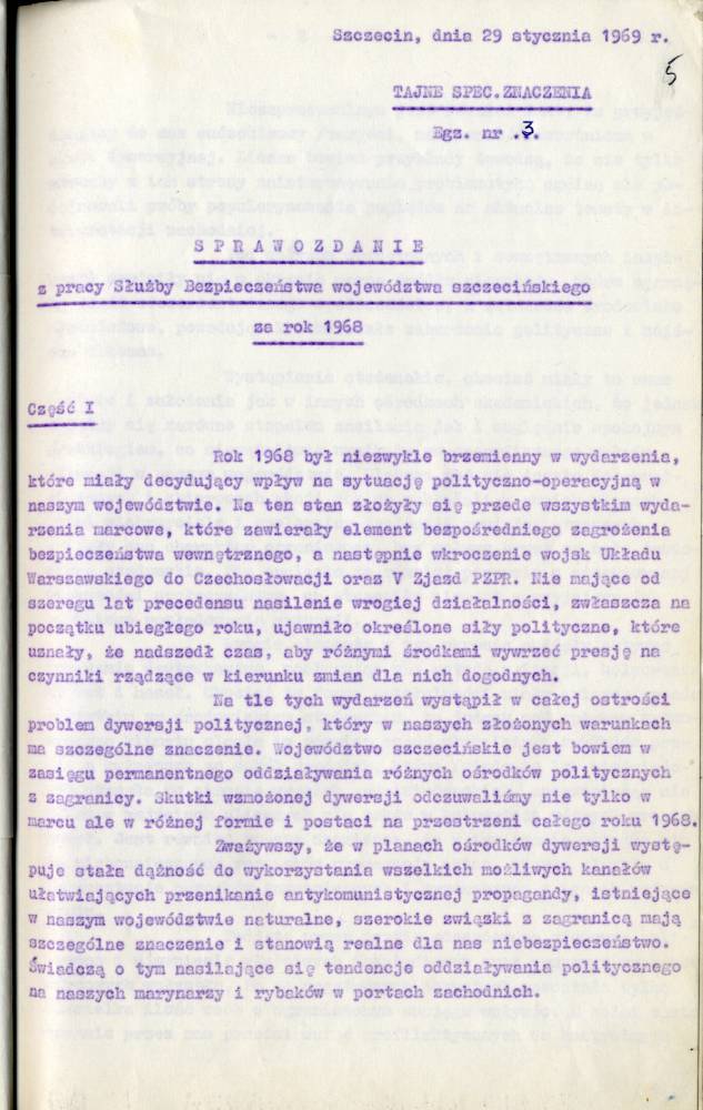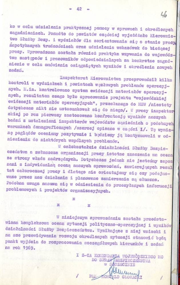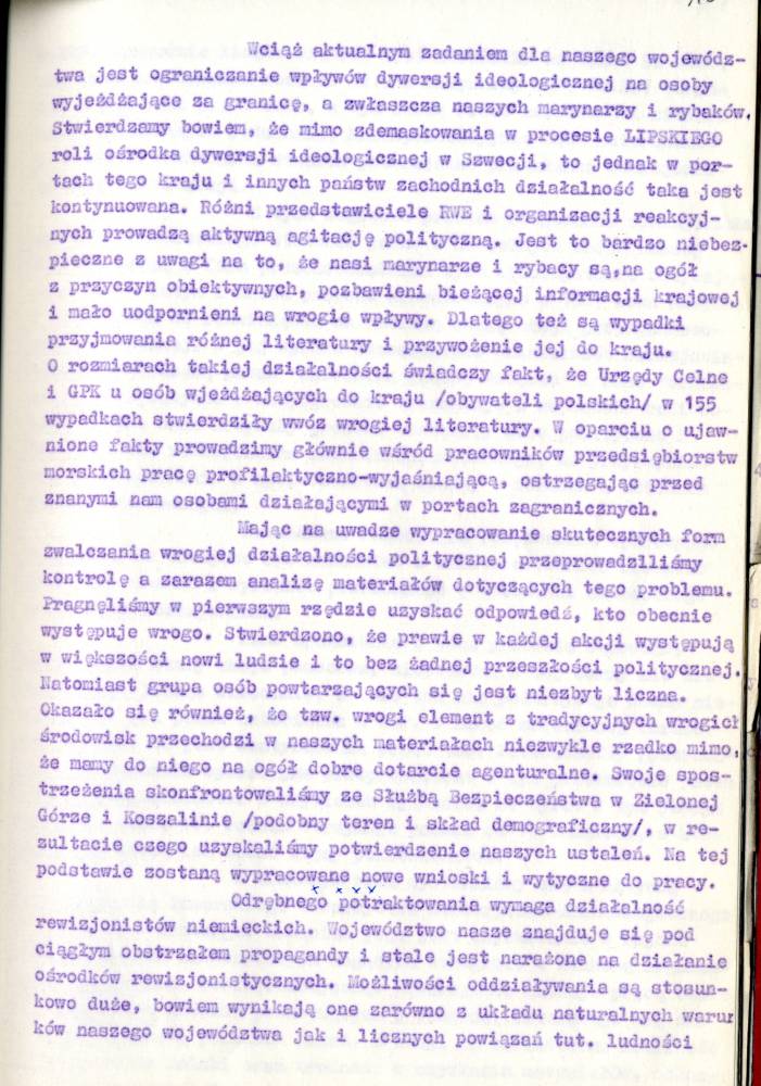 Sprawozdanie I Zastępcy Komendanta Wojewódzkiego MO ds. Bezpieczeństwa z pracy Służby Bezpieczeństwa
