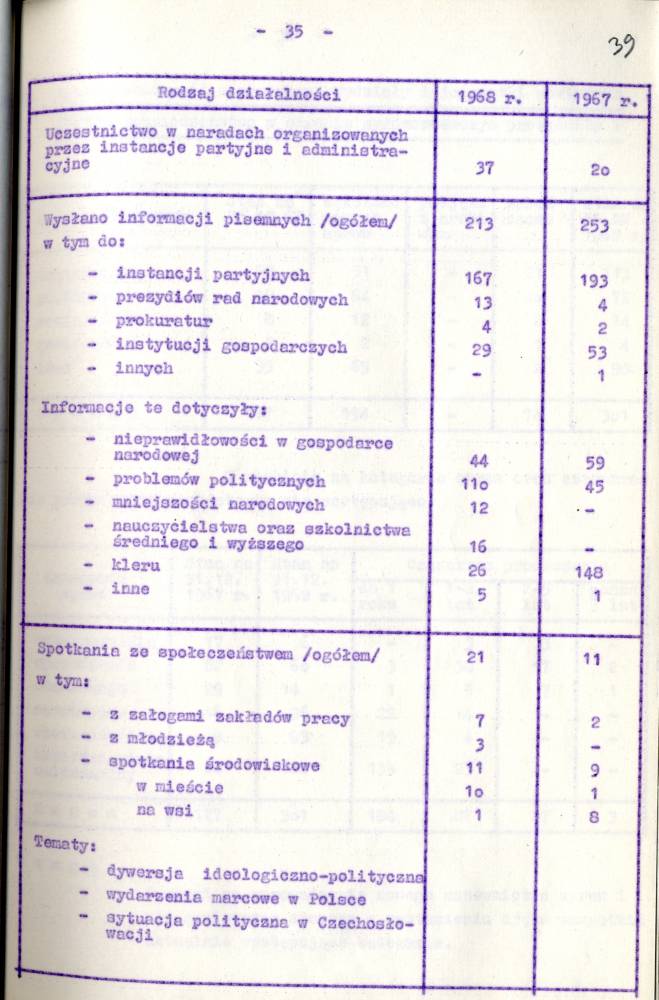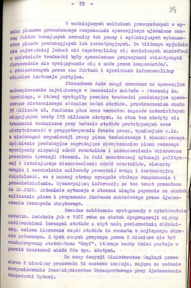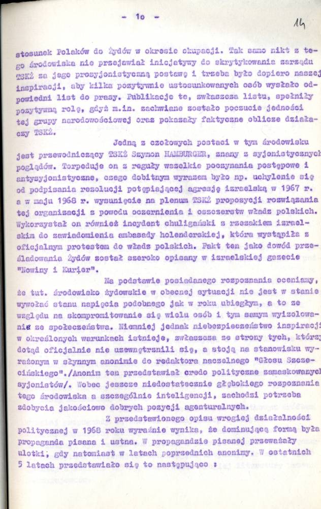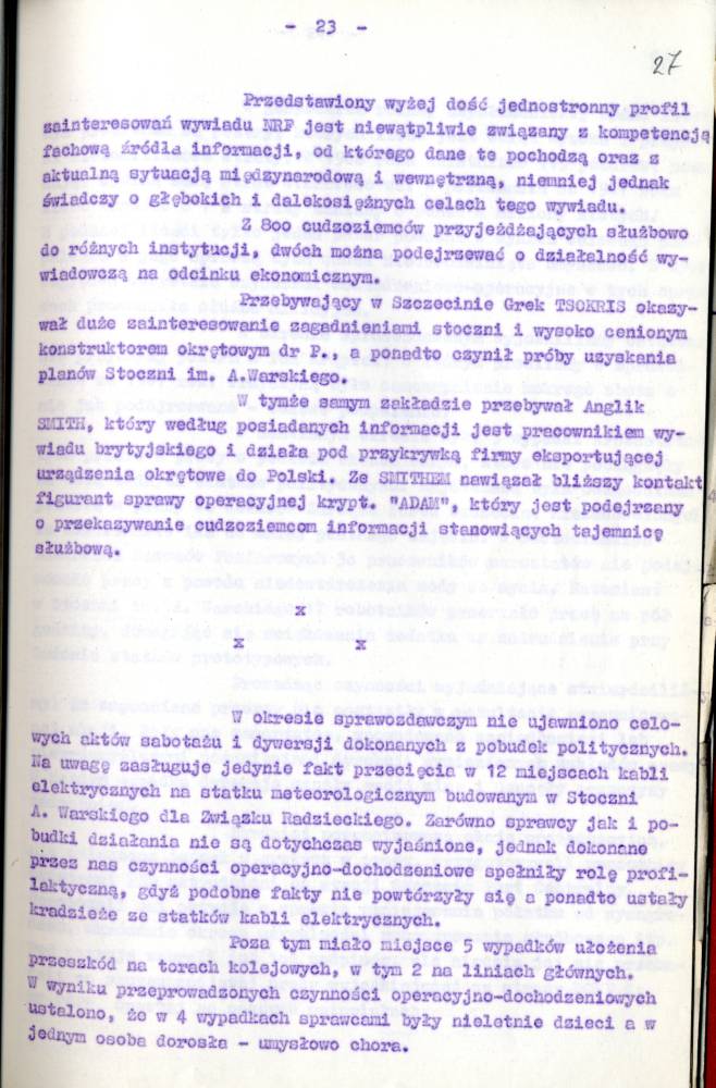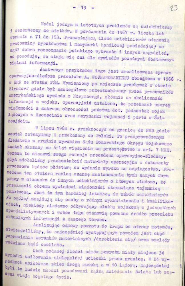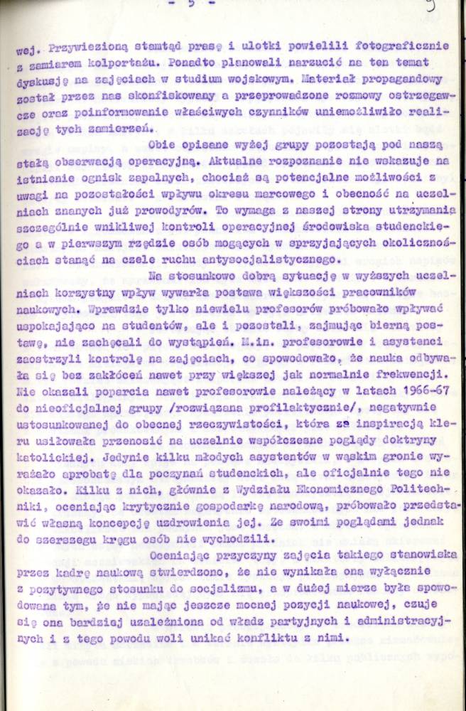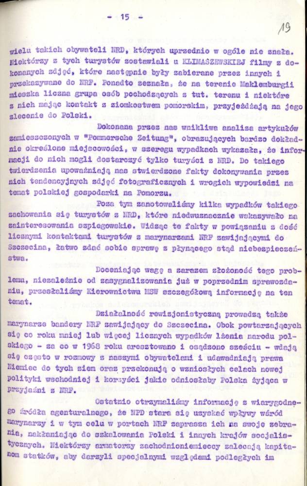 Sprawozdanie I Zastępcy Komendanta Wojewódzkiego MO ds. Bezpieczeństwa z pracy Służby Bezpieczeństwa