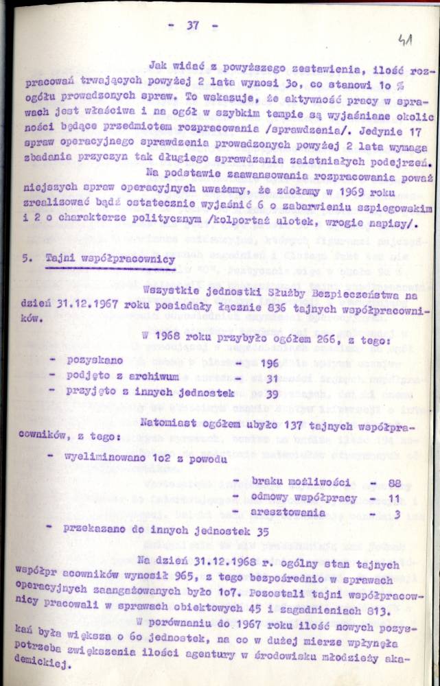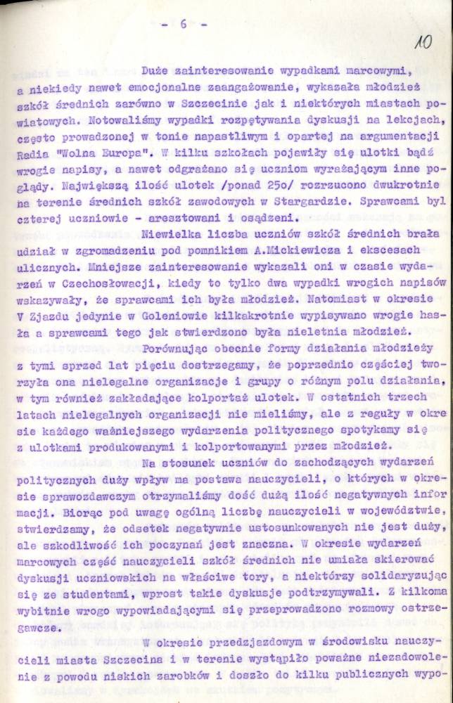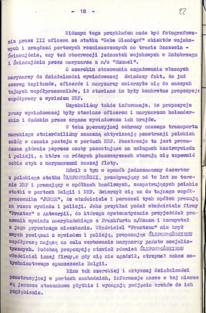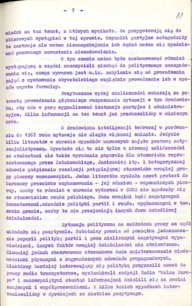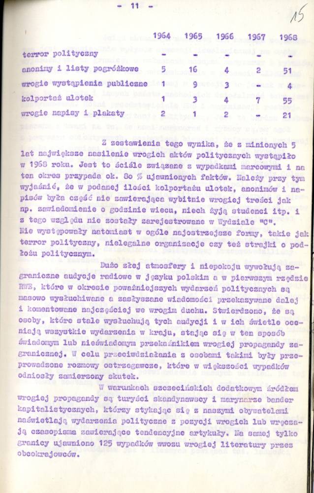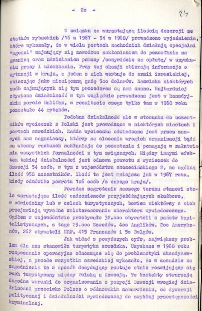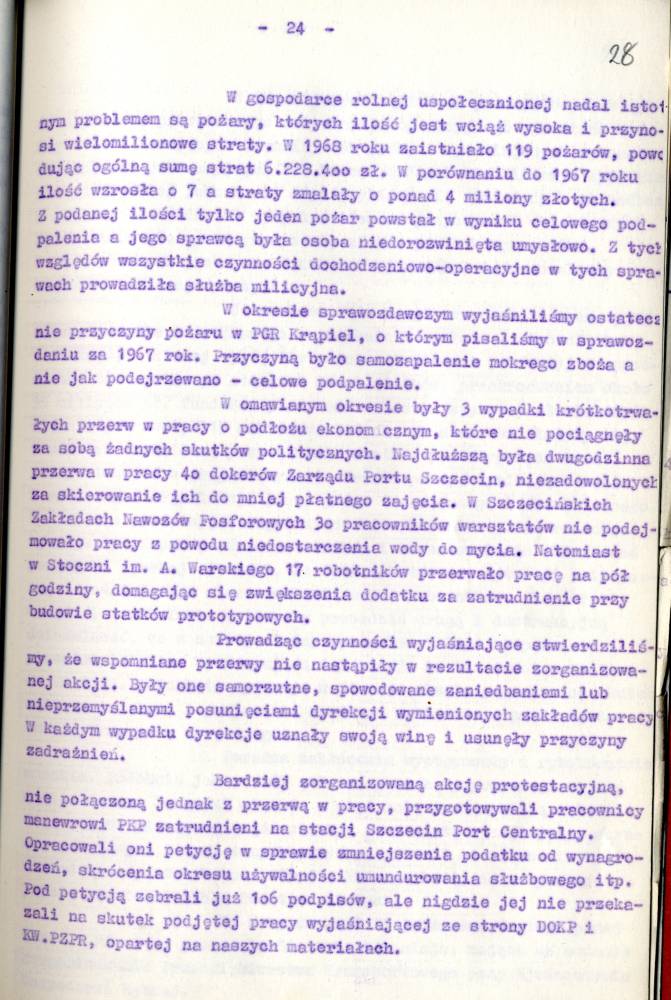 Sprawozdanie I Zastępcy Komendanta Wojewódzkiego MO ds. Bezpieczeństwa z pracy Służby Bezpieczeństwa