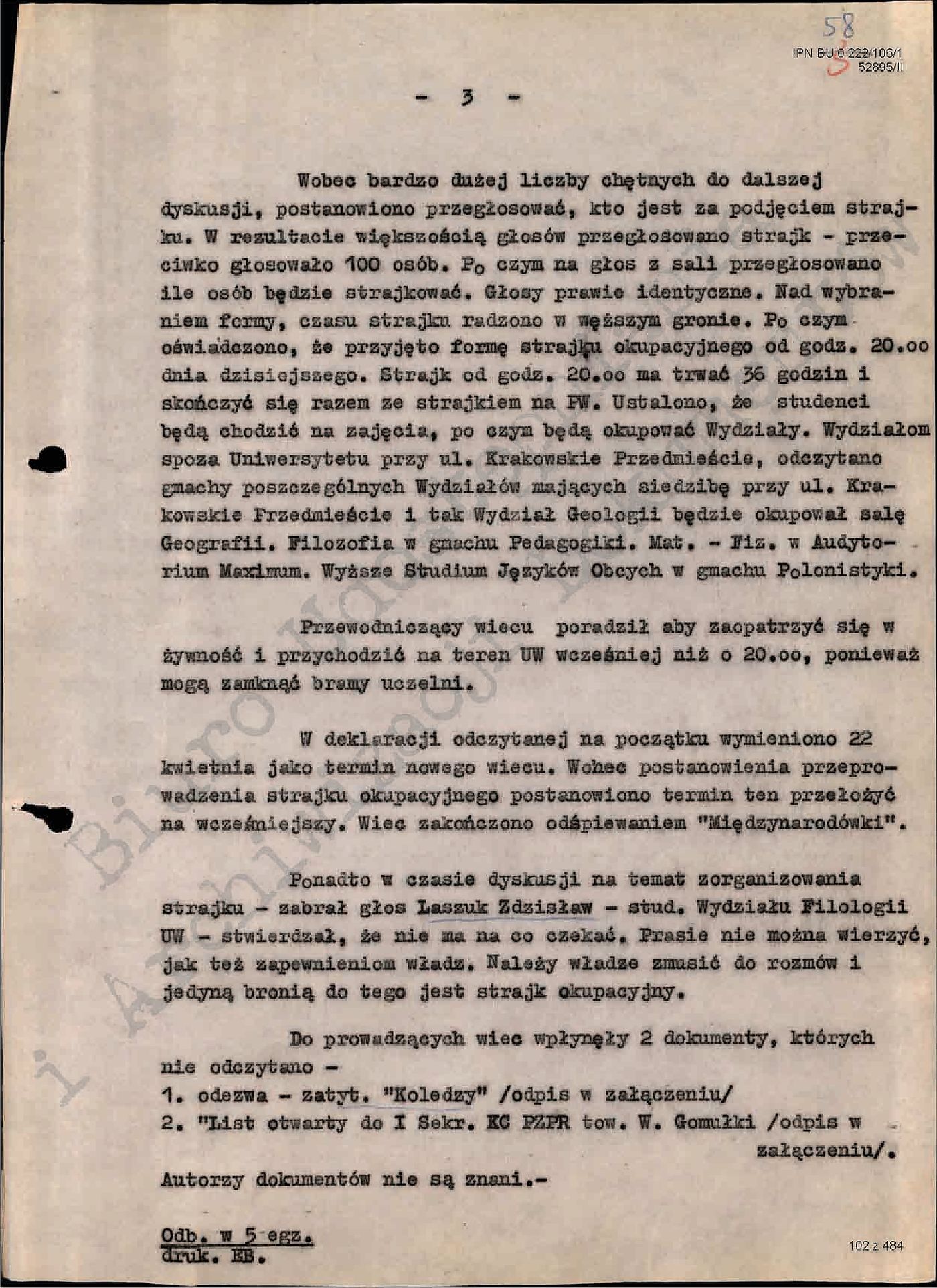 Notatka informacyjna dotycząca przebiegu wiecu na UW Notatka informacyjna dotycząca przebiegu wiecu na UW Notatka informacyjna dotycząca przebiegu wiecu na UW