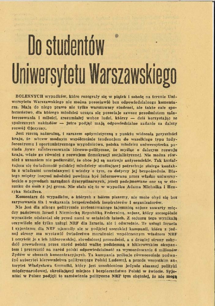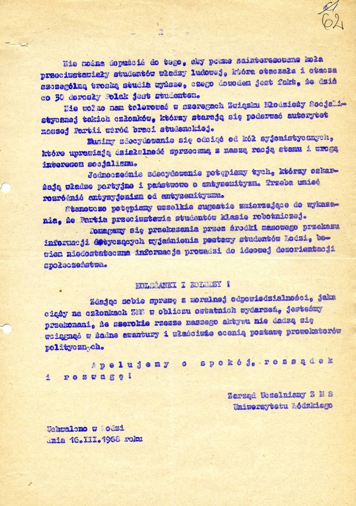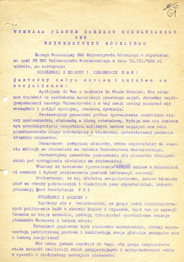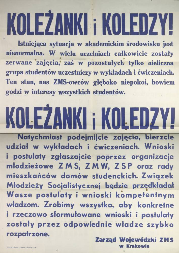 Kopia plakatu z apelem Zarządu Wojewódzkiego ZMS w Krakowie do studentów Apel Kolegim Rektorów Miasta Poznania Apel Rektora AGH do studentów (Kraków) Apel Rektora AGH do studentów (Kraków) Uchwała Plenum Zarządu Uczelnianego ZMS Uniwersytetu Łódzkiego s. 1 Uchwała Plenum Zarządu Uczelnianego ZMS Uniwersytetu Łódzkiego s. 2 Ulotki propagandowe #1 Ulotki propagandowe #2 Ulotki propagandowe #3 Ulotki propagandowe #4 Ulotki propagandowe #6 Ulotki propagandowe #7 Ulotki propagandowe #8 Ulotki propagandowe #9 Ulotki propagandowe #10 Ulotki propagandowe #11