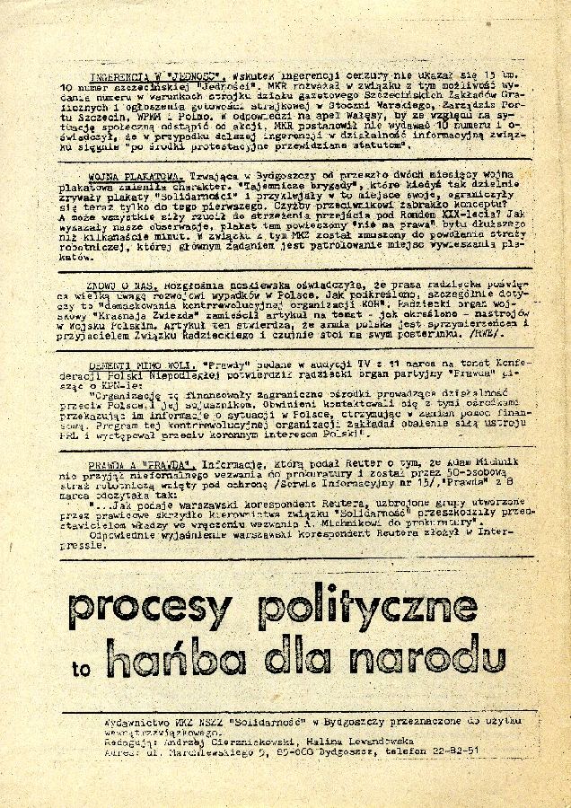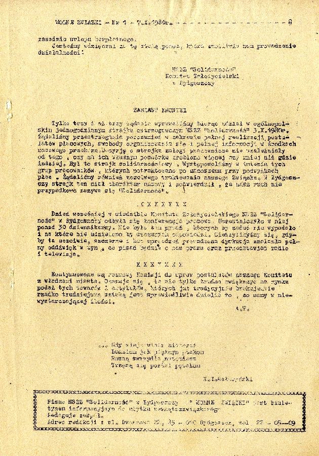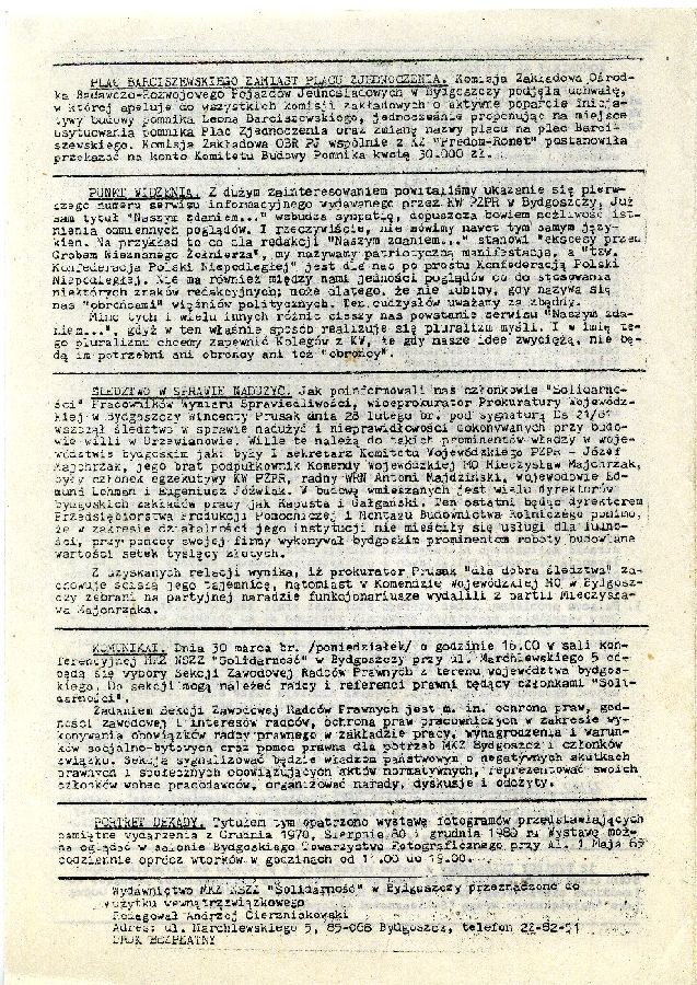 „Wolne Związki” – pismo NSZZ „Solidarność” w Bydgoszczy z dnia 13.10.1980 r. #1 „Wolne Związki” – pismo NSZZ „Solidarność” w Bydgoszczy z dnia 13.10.1980 r. #2 „Wolne Związki” – pismo NSZZ „Solidarność” w Bydgoszczy z dnia 13.10.1980 r. #3 „Wolne Związki” – pismo NSZZ „Solidarność” w Bydgoszczy z dnia 13.10.1980 r. #5 „Wolne Związki” – pismo NSZZ „Solidarność” w Bydgoszczy z dnia 13.10.1980 r. #6 „Wolne Związki” – pismo NSZZ „Solidarność” w Bydgoszczy z dnia 13.10.1980 r. #7 „Wolne Związki” – pismo NSZZ „Solidarność” w Bydgoszczy z dnia 13.10.1980 r. #8 „Wolne Związki” – pismo NSZZ „Solidarność” w Bydgoszczy z dnia 08.11.1980 r. #1 „Wolne Związki” – pismo NSZZ „Solidarność” w Bydgoszczy z dnia 08.11.1980 r. #2 „Wolne Związki” – pismo NSZZ „Solidarność” w Bydgoszczy z dnia 08.11.1980 r. #3 „Wolne Związki” – pismo NSZZ „Solidarność” w Bydgoszczy z dnia 08.11.1980 r. #4 „Wolne Związki” – pismo NSZZ „Solidarność” w Bydgoszczy z dnia 08.11.1980 r. #5 „Wolne Związki” – pismo NSZZ „Solidarność” w Bydgoszczy z dnia 08.11.1980 r. #6 „Solidarność Pilska” – pismo NSZZ „Solidarność” w Pile z dnia 27.11.1980 r. „Solidarność Pilska” – pismo NSZZ „Solidarność” w Pile z dnia 27.11.1980 r. „Solidarność Pilska” – pismo NSZZ „Solidarność” w Pile z dnia 22.01.1981 r. Komunikat MKZ NSZZ „Solidarność” w Bydgoszczy z dnia 6 stycznia 1981 r. o strajku w Ustrzykach Dolnych „Wolne Związki” – pismo NSZZ „Solidarność” w Bydgoszczy z dnia 20.12.1980 r. #1 „Wolne Związki” – pismo NSZZ „Solidarność” w Bydgoszczy z dnia 20.12.1980 r. #2 „Wolne Związki” – pismo NSZZ „Solidarność” w Bydgoszczy z dnia 20.12.1980 r. #3 „Wolne Związki” – pismo NSZZ „Solidarność” w Bydgoszczy z dnia 20.12.1980 r. #4 „Wolne Związki” – pismo NSZZ „Solidarność” w Bydgoszczy z dnia 20.12.1980 r. #5 „Wolne Związki” – pismo NSZZ „Solidarność” w Bydgoszczy z dnia 20.12.1980 r. #6 „Wolne Związki” – pismo NSZZ „Solidarność” w Bydgoszczy z dnia 20.12.1980 r. #7 „Wolne Związki” – pismo NSZZ „Solidarność” w Bydgoszczy z dnia 20.12.1980 r. #8 „Wolne Związki” – pismo NSZZ „Solidarność” w Bydgoszczy z dnia 20.12.1980 r. #9 „Wolne Związki” – pismo NSZZ „Solidarność” w Bydgoszczy z dnia 20.12.1980 r. #10 „Wolne Związki” – pismo NSZZ „Solidarność” w Bydgoszczy z dnia 20.12.1980 r. #11 „Wolne Związki” – pismo NSZZ „Solidarność” w Bydgoszczy z dnia 20.12.1980 r. #12 „Wolne Związki” – pismo NSZZ „Solidarność” w Bydgoszczy z dnia 20.12.1980 r. #13 „Wolne Związki” – pismo NSZZ „Solidarność” w Bydgoszczy z dnia 20.12.1980 r. #14 „Wolne Związki” – pismo NSZZ „Solidarność” w Bydgoszczy z dnia 01.07.1981 r. #1 „Wolne Związki” – pismo NSZZ „Solidarność” w Bydgoszczy z dnia 01.07.1981 r. #2 „Wolne Związki” – pismo NSZZ „Solidarność” w Bydgoszczy z dnia 01.07.1981 r. #3 „Wolne Związki” – pismo NSZZ „Solidarność” w Bydgoszczy z dnia 01.07.1981 r. #4 „Wolne Związki” – pismo NSZZ „Solidarność” w Bydgoszczy z dnia 01.07.1981 r. #5 „Wolne Związki” – pismo NSZZ „Solidarność” w Bydgoszczy z dnia 01.07.1981 r. #6 „Wolne Związki” – pismo NSZZ „Solidarność” w Bydgoszczy z dnia 01.07.1981 r. #7 „Wolne Związki” – pismo NSZZ „Solidarność” w Bydgoszczy z dnia 01.07.1981 r. #8 „Wolne Związki” – pismo NSZZ „Solidarność” w Bydgoszczy z dnia 01.07.1981 r. #9 „Wolne Związki” – pismo NSZZ „Solidarność” w Bydgoszczy z dnia 01.07.1981 r. #10 „Wolne Związki” – pismo NSZZ „Solidarność” w Bydgoszczy z dnia 01.07.1981 r. #11 „Wolne Związki” – pismo NSZZ „Solidarność” w Bydgoszczy z dnia 01.07.1981 r. #12 „Serwis Informacyjny” – pismo NSZZ „Solidarność” w Bydgoszczy z dnia 16.03.1981 r. #1 „Serwis Informacyjny” – pismo NSZZ „Solidarność” w Bydgoszczy z dnia 16.03.1981 r. #2 „Serwis Informacyjny” – pismo NSZZ „Solidarność” w Bydgoszczy z dnia 16.03.1981 r. #3 „Serwis Informacyjny” – pismo NSZZ „Solidarność” w Bydgoszczy z dnia 16.03.1981 r. #4 „Serwis Informacyjny” – pismo NSZZ „Solidarność” w Bydgoszczy z dnia 16.03.1981 r. #5 „Serwis Informacyjny” – pismo NSZZ „Solidarność” w Bydgoszczy z dnia 16.03.1981 r. #6 „Serwis Informacyjny” – pismo NSZZ „Solidarność” w Bydgoszczy z dnia 19.03.1981 r. #1 „Serwis Informacyjny” – pismo NSZZ „Solidarność” w Bydgoszczy z dnia 19.03.1981 r. #2 „Serwis Informacyjny” – pismo NSZZ „Solidarność” w Bydgoszczy z dnia 19.03.1981 r. #3 „Serwis Informacyjny” – pismo NSZZ „Solidarność” w Bydgoszczy z dnia 19.03.1981 r. #4 „Serwis Informacyjny” – pismo NSZZ „Solidarność” w Bydgoszczy z dnia 19.03.1981 r. #5 „Serwis Informacyjny” – pismo NSZZ „Solidarność” w Bydgoszczy z dnia 19.03.1981 r. #6 „Wolne Związki” nr1– pismo NSZZ „Solidarność” w Bydgoszczy z dnia 07.10.1980 r. #1 „Wolne Związki” nr1– pismo NSZZ „Solidarność” w Bydgoszczy z dnia 07.10.1980 r. #2 „Wolne Związki” nr1– pismo NSZZ „Solidarność” w Bydgoszczy z dnia 07.10.1980 r. #3 „Wolne Związki” nr1– pismo NSZZ „Solidarność” w Bydgoszczy z dnia 07.10.1980 r. #4 „Wolne Związki” nr1– pismo NSZZ „Solidarność” w Bydgoszczy z dnia 07.10.1980 r. #5 „Wolne Związki” nr1– pismo NSZZ „Solidarność” w Bydgoszczy z dnia 07.10.1980 r. #6 „Wolne Związki” nr1– pismo NSZZ „Solidarność” w Bydgoszczy z dnia 07.10.1980 r. #7 „Wolne Związki” nr1– pismo NSZZ „Solidarność” w Bydgoszczy z dnia 07.10.1980 r. #8 „Protest” – pismo NSZZ „Solidarno