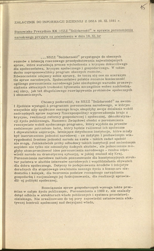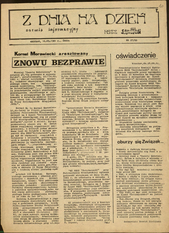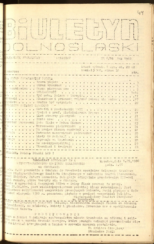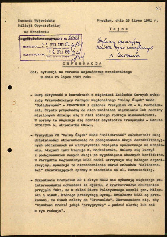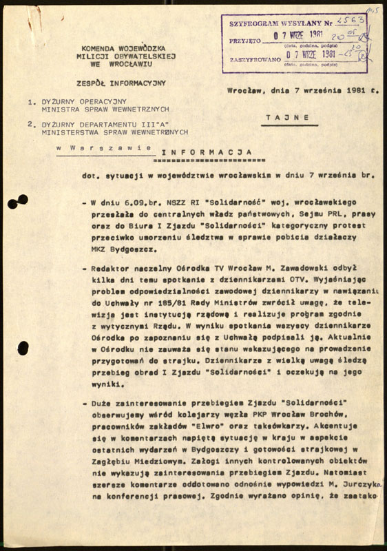 Sprawa Operacyjnego Sprawdzenia „Anna”. Dot. zamiaru zorganizowania przez Zarząd NSZZ S #1 Sprawa Operacyjnego Sprawdzenia „Anna”. Dot. zamiaru zorganizowania przez Zarząd NSZZ S #2 Sprawa Operacyjnego Sprawdzenia „Anna”. Dot. zamiaru zorganizowania przez Zarząd NSZZ S #3 Sprawa Operacyjnego Sprawdzenia „Anna”. Dot. zamiaru zorganizowania przez Zarząd NSZZ S #4 Sprawa Operacyjnego Sprawdzenia „Anna”. Dot. zamiaru zorganizowania przez Zarząd NSZZ S #5 Sprawa Operacyjnego Sprawdzenia „Anna”. Dot. zamiaru zorganizowania przez Zarząd NSZZ S #6 Sprawa Operacyjnego Sprawdzenia „Anna”. Dot. zamiaru zorganizowania przez Zarząd NSZZ S #7 Sprawa Operacyjnego Sprawdzenia „Anna”. Dot. zamiaru zorganizowania przez Zarząd NSZZ S #8 SOS Zgryz - nastroje niezadowolenia Huta Miedzi Legnica na tle warunków pracy, płacy, spr #1 SOS Zgryz - nastroje niezadowolenia Huta Miedzi Legnica na tle warunków pracy, płacy, spr #2 SOS Zgryz - nastroje niezadowolenia Huta Miedzi Legnica na tle warunków pracy, płacy, spr #3 SOS Skrzynia - przerwa w pracy w Zakłady Transportowe KGHM Lubin 1980 [na Wydz. Transport SOS Sierpień [strajk w ZG Polkowice 26.08.1980] #1 SOS Sierpień [strajk w ZG Polkowice 26.08.1980] #2 SOS Sierpień [strajk w ZG Polkowice 26.08.1980] #3 SOS Sierpień [strajk w ZG Polkowice 26.08.1980] #4 SOS Sierpień [strajk w ZG Polkowice 26.08.1980] #5 SOS Sierpień [strajk w ZG Polkowice 26.08.1980] #6 SOS Górnik - strajk górników zatrudnionych w ZG Rudna Polkowice dnia 27.08.1980 #1 SOS Górnik - strajk górników zatrudnionych w ZG Rudna Polkowice dnia 27.08.1980 #2 SOS Górnik - strajk górników zatrudnionych w ZG Rudna Polkowice dnia 27.08.1980 #3 BRODA Jarosław i inni Klimek Jarosław Bogusław s. Alfreda, ur. 18.12.1955 + 11 os. - SOR #1 BRODA Jarosław i inni Klimek Jarosław Bogusław s. Alfreda, ur. 18.12.1955 + 11 os. - SOR #3 BRODA Jarosław i inni Klimek Jarosław Bogusław s. Alfreda, ur. 18.12.1955 + 11 os. - SOR #4 BRODA Jarosław i inni Klimek Jarosław Bogusław s. Alfreda, ur. 18.12.1955 + 11 os. - SOR #5 SO Tabor - Wojewódzki Kompleks Transportu PKS, PSK, PLL LOT, Aeroklub, Transbud (nr rej #1 SO Tabor - Wojewódzki Kompleks Transportu PKS, PSK, PLL LOT, Aeroklub, Transbud (nr rej #2 GLEICHGEWICHT Aleksander s. Bolesława, ur. 02.08.1953 #1 GLEICHGEWICHT Aleksander s. Bolesława, ur. 02.08.1953 #2 Oceny sytuacji operacyjno-politycznej woj. wrocławskiego 1977-1984 #1 Oceny sytuacji operacyjno-politycznej woj. wrocławskiego 1977-1984 #2 Oceny sytuacji operacyjno-politycznej woj. wrocławskiego 1977-1984 #3 Oceny sytuacji operacyjno-politycznej woj. wrocławskiego 1977-1984 #4 Oceny sytuacji operacyjno-politycznej woj. wrocławskiego 1977-1984 #5 Oceny sytuacji operacyjno-politycznej woj. wrocławskiego 1977-1984 #6 Oceny sytuacji operacyjno-politycznej woj. wrocławskiego 1977-1984 #7 Oceny sytuacji operacyjno-politycznej woj. wrocławskiego 1977-1984 #8 Oceny sytuacji operacyjno-politycznej woj. wrocławskiego 1977-1984 #9 Oceny sytuacji operacyjno-politycznej woj. wrocławskiego 1977-1984 #10 Oceny sytuacji operacyjno-politycznej woj. wrocławskiego 1977-1984 #11 Oceny sytuacji operacyjno-politycznej woj. wrocławskiego 1977-1984 #12 Oceny sytuacji operacyjno-politycznej woj. wrocławskiego 1977-1984 #13 Harmonogram posiedzeń kierownictwa KWMO Wrocław na II półrocze 1975 r. oraz inne pozyc #1 Harmonogram posiedzeń kierownictwa KWMO Wrocław na II półrocze 1975 r. oraz inne pozyc #2 Harmonogram posiedzeń kierownictwa KWMO Wrocław na II półrocze 1975 r. oraz inne pozyc #3 Harmonogram posiedzeń kierownictwa KWMO Wrocław na II półrocze 1975 r. oraz inne pozyc #4 Harmonogram posiedzeń kierownictwa KWMO Wrocław na II półrocze 1975 r. oraz inne pozyc #5 Harmonogram posiedzeń kierownictwa KWMO Wrocław na II półrocze 1975 r. oraz inne pozyc #6 Harmonogram posiedzeń kierownictwa KWMO Wrocław na II półrocze 1975 r. oraz inne pozyc #7 Harmonogram posiedzeń kierownictwa KWMO Wrocław na II półrocze 1975 r. oraz inne pozyc #8 Harmonogram posiedzeń kierownictwa KWMO Wrocław na II półrocze 1975 r. oraz inne pozyc #9 Harmonogram posiedzeń kierownictwa KWMO Wrocław na II półrocze 1975 r. oraz inne pozyc #10 Harmonogram posiedzeń kierownictwa KWMO Wrocław na II półrocze 1975 r. oraz inne pozyc #11 Harmonogram posiedzeń kierownictwa KWMO Wrocław na II półrocze 1975 r. oraz inne pozyc #12 Informacje sytuacyjne Sztabu MSW 11.10.1981-20.11.1981 #1 Informacje sytuacyjne Sztabu MSW 11.10.1981-20.11.1981 #2 Informacje sytuacyjne Sztabu MSW 11.10.1981-20.11.1981 #3 Informacje sytuacyjne Sztabu MSW 11.10.1981-20.11.1981 #4 Informacje sytuacyjne Sztabu MSW 11.10.1981-20.11.1981 #5 Informacje sytuacyjne Sztabu MSW 11.10.1981-20.11.1981 #6 Informacje sytuacyjne Sztabu MSW 11.10.1981-20.11.1981 #7 Informacje sytuacyjne Sztabu MSW 11.10.1981-20.11.1981 #8 Informacje sytuacyjne Sztabu MSW 11.10.1981-20.11.1981 #9 Informacje sytuacyjne Sztabu MSW 11.10.1981-20.11.1981 #10 Informacje sytuacyjne Sztabu MSW 11.10.1981-20.11.1981 #11 Materiały różne - kryptonimy i pisma NSZZ Solidarność, ulotki #1 Materiały różne - kryptonimy i pisma NSZZ Solidarność, ulotki #2 Materiały różne - kryptonimy i pisma NSZZ Solidarność, ulotki #7 Materiały różne - kryptonimy i pisma NSZZ Solidarność, ulotki #8 Materiały różne - kryptonimy i pisma NSZZ Solidarność, ulotki #9 Materiały różne - kryptonimy i pisma NSZZ Solidarność, ulotki #10 10-20045 Sytuacja w woj. wrocławskim, Informacje MSW -1981 #1 Sytuacja w woj. wrocławskim, Informacje MSW -1981 #2 Sytuacja w woj. wrocławskim, Informacje MSW -1981 #3 Sytuacja w woj. wrocławskim, Informacje MSW -1981 #4 Sytuacja w woj. wrocławskim, Informacje MSW -1981 #5 Sytuacja w woj. wrocławskim, Informacje MSW -1981 #6 Sytuacja w woj. wrocławskim, Informacje MSW -1981 #7 Sytuacja w woj. wrocławskim, Informacje MSW -1981 #8 Sytuacja w woj. wrocławskim, Informacje MSW -