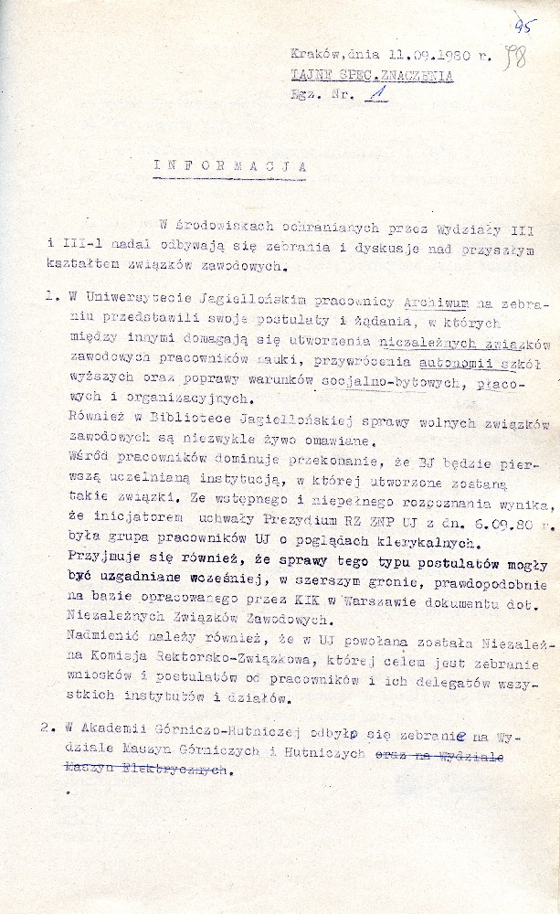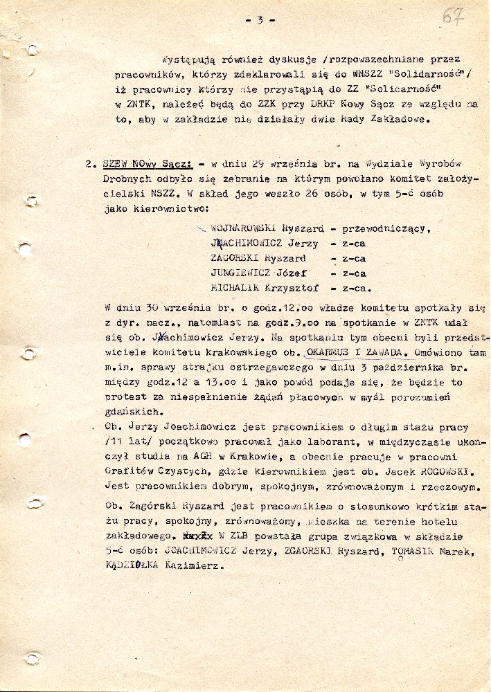 Zarządzenie nr 030/80 Komendanta Wojewódzkiego Milicji Obywatelskiej w Nowym Sączu z dnia 26.08.1980 – IPN Kr 038/8 t.2 (KWMO Nowy Sącz 33/IV) Zarządzenie nr 030/80 Komendanta Wojewódzkiego Milicji Obywatelskiej w Nowym Sączu z dnia 26.08.1980 – IPN Kr 038/8 t.2 (KWMO Nowy Sącz 33/IV) Decyzja nr 013/80 Komendanta Wojewódzkiego Milicji Obywatelskiej w Nowym Sączu z dnia 26.08.1980 - IPN Kr 038/8 t.2 (KWMO Nowy Sącz 33/IV) Meldunek dot. sytuacji operacyjno – politycznej w województwie nowosądeckim z dnia 27.08.1980 - IPN Kr 038/12 t.1 (KWMO Nowy Sącz 41/IV) Informacja dotycząca związków zawodowych działających na terenie województwa nowosądeckiego z dnia 30.09.1980 - IPN Kr 038/12 t.1 (KWMO Nowy Sącz 41/IV) Informacja dotycząca związków zawodowych działających na terenie województwa nowosądeckiego z dnia 30.09.1980 - IPN Kr 038/12 t.1 (KWMO Nowy Sącz 41/IV) Informacja dotycząca związków zawodowych działających na terenie województwa nowosądeckiego z dnia 30.09.1980 - IPN Kr 038/12 t.1 (KWMO Nowy Sącz 41/IV) Informacja dotycząca związków zawodowych działających na terenie województwa nowosądeckiego z dnia 30.09.1980 - IPN Kr 038/12 t.1 (KWMO Nowy Sącz 41/IV) Informacja dotycząca związków zawodowych działających na terenie województwa nowosądeckiego z dnia 30.09.1980 - IPN Kr 038/12 t.1 (KWMO Nowy Sącz 41/IV) Informacja dotycząca związków zawodowych działających na terenie województwa nowosądeckiego z dnia 30.09.1980 - IPN Kr 038/12 t.1 (KWMO Nowy Sącz 41/IV) Meldunek dotyczący sytuacji operacyjno – politycznej na terenie województwa nowosądeckiego z dnia 03.10.1980 - IPN Kr 038/12 t.1 (KWMO Nowy Sącz 41/IV) Meldunek dotyczący sytuacji społeczno – politycznej w województwie nowosądeckim z dnia 19.10.1980 - IPN Kr 038/12 t.1 (KWMO Nowy Sącz 41/IV) Meldunek dotyczący sytuacji społeczno – politycznej w województwie nowosądeckim z dnia 19.10.1980 - IPN Kr 038/12 t.1 (KWMO Nowy Sącz 41/IV) Informacja dotycząca powstania NSZZ „Solidarność” w zakładach pracy na terenie województwa nowosądeckiego z dnia 20.10.1980 - IPN Kr 038/12 t.1 (KWMO Nowy Sącz 41/IV) Informacja dotycząca powstania NSZZ „Solidarność” w zakładach pracy na terenie województwa nowosądeckiego z dnia 20.10.1980 - IPN Kr 038/12 t.1 (KWMO Nowy Sącz 41/IV) Informacja dotycząca powstania NSZZ „Solidarność” w zakładach pracy na terenie województwa nowosądeckiego z dnia 20.10.1980 - IPN Kr 038/12 t.1 (KWMO Nowy Sącz 41/IV) Zarządzenie nr 012/80 Komendanta Wojewódzkiego Milicji Obywatelskiej w Krakowie z dnia 17.08.1980 dotyczące zapewnienia bezpieczeństwa i porządku w województwie - IPN Kr 053/6 t.14 (KWMO Kraków 8/K) Zarządzenie nr 012/80 Komendanta Wojewódzkiego Milicji Obywatelskiej w Krakowie z dnia 17.08.1980 dotyczące zapewnienia bezpieczeństwa i porządku w województwie - IPN Kr 053/6 t.14 (KWMO Kraków 8/K) Zarządzenie nr 012/80 Komendanta Wojewódzkiego Milicji Obywatelskiej w Krakowie z dnia 17.08.1980 dotyczące zapewnienia bezpieczeństwa i porządku w województwie - IPN Kr 053/6 t.14 (KWMO Kraków 8/K) Zarządzenie nr 012/80 Komendanta Wojewódzkiego Milicji Obywatelskiej w Krakowie z dnia 17.08.1980 dotyczące zapewnienia bezpieczeństwa i porządku w województwie - IPN Kr 053/6 t.14 (KWMO Kraków 8/K) Plan pracy operacyjne Wydziału III KWMO w Krakowie na rok 1980 - IPN Kr 056/97 (KWMO Kraków 145/K) Plan pracy operacyjne Wydziału III KWMO w Krakowie na rok 1980 - IPN Kr 056/97 (KWMO Kraków 145/K) Plan pracy operacyjne Wydziału III KWMO w Krakowie na rok 1980 - IPN Kr 056/97 (KWMO Kraków 145/K) Plan pracy operacyjne Wydziału III KWMO w Krakowie na rok 1980 - IPN Kr 056/97 (KWMO Kraków 145/K) Plan pracy operacyjne Wydziału III KWMO w Krakowie na rok 1980 - IPN Kr 056/97 (KWMO Kraków 145/K) Plan pracy operacyjne Wydziału III KWMO w Krakowie na rok 1980 - IPN Kr 056/97 (KWMO Kraków 145/K) Plan pracy operacyjne Wydziału III KWMO w Krakowie na rok 1980 - IPN Kr 056/97 (KWMO Kraków 145/K) Plan pracy operacyjne Wydziału III KWMO w Krakowie na rok 1980 - IPN Kr 056/97 (KWMO Kraków 145/K) Plan pracy operacyjne Wydziału III KWMO w Krakowie na rok 1980 - IPN Kr 056/97 (KWMO Kraków 145/K) Plan pracy operacyjne Wydziału III KWMO w Krakowie na rok 1980 - IPN Kr 056/97 (KWMO Kraków 145/K) Plan pracy operacyjne Wydziału III KWMO w Krakowie na rok 1980 - IPN Kr 056/97 (KWMO Kraków 145/K) Uzupełnienie planu działań Wydziału III KWMO w Krakowie z dnia 04.11.1980 - IPN Kr 056/97 (KWMO Kraków 145/K) Uzupełnienie planu działań Wydziału III KWMO w Krakowie z dnia 04.11.1980 - IPN Kr 056/97 (KWMO Kraków 145/K) Uzupełnienie planu działań Wydziału III KWMO w Krakowie z dnia 04.11.1980 - IPN Kr 056/97 (KWMO Kraków 145/K) Uzupełnienie planu działań Wydziału III KWMO w Krakowie z dnia 04.11.1980 - IPN Kr 056/97 (KWMO Kraków 145/K) Uzupełnienie planu działań Wydziału III KWMO w Krakowie z dnia 04.11.1980 - IPN Kr 056/97 (KWMO Kraków 145/K) Uzupełnienie planu działań Wydziału III KWMO w Krakowie z dnia 04.11.1980 - IPN Kr 056/97 (KWMO Kraków 145/K) Uzupełnienie planu działań Wydziału III KWMO w Krakowie z dnia 04.11.1980 - IPN Kr 056/97 (KWMO Kraków 145/K) Uzupełnienie planu działań Wydziału III KWMO w Krakowie z dnia 04.11.1980 - IPN Kr 056/97 (KWMO Kraków 145/K) Analiza zagrożeń i stanu bezpieczeństwa województwa krakowskiego w 1980 r. - IPN Kr 056/97 (KWMO Kraków 145/K) Analiza zagrożeń i stanu bezpieczeństwa województwa krakowskiego w 1980 r. - IPN Kr 056/97 (KWMO Kraków 145/K) Analiza zagrożeń i stanu bezpieczeństwa województwa krakowskiego w 1980 r. - IPN Kr 056/97 (KWMO Kraków 145/K) Analiza zagrożeń i stanu bezpieczeństwa województwa krakowskiego w 1980 r. - IPN Kr 056/97 (KWMO Kraków 145/K) Analiza zagrożeń i stanu bezpieczeństwa województwa krakowskiego w 1980 r. - IPN Kr 056/97 (KWMO Kraków 145/K) Analiza zagrożeń i stanu be