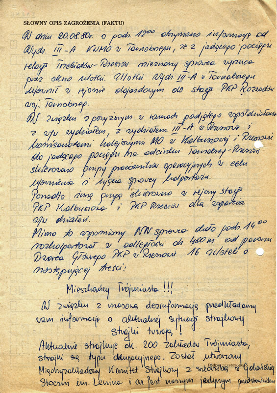 KWMO w Rzeszowie. Informacje dzienne i szyfrogramy do MSW od 18.08. 1980 do 31.12.1980 r. KWMO w Rzeszowie. Informacje dzienne i szyfrogramy do MSW od 18.08. 1980 do 31.12.1980 r. KWMO w Rzeszowie. Informacje dzienne i szyfrogramy do MSW od 18.08. 1980 do 31.12.1980 r. KWMO w Rzeszowie. Informacje dzienne i szyfrogramy do MSW od 18.08. 1980 do 31.12.1980 r. KWMO w Rzeszowie. Informacje dzienne i szyfrogramy do MSW od 18.08. 1980 do 31.12.1980 r. KWMO w Rzeszowie. Informacje dzienne i szyfrogramy do MSW od 18.08. 1980 do 31.12.1980 r. KWMO w Rzeszowie. Informacje dzienne i szyfrogramy do MSW od 18.08. 1980 do 31.12.1980 r. KWMO w Rzeszowie. Informacje do MSW za okres 01.07.1980 – 30.12.1980 r. KWMO w Rzeszowie. Informacje do MSW za okres 01.07.1980 – 30.12.1980 r. KWMO w Rzeszowie. Informacje z roku 1980. Informacja nr 30/80 KWMO w Rzeszowie. Informacje z roku 1980. Informacja nr 30/80 KWMO w Rzeszowie. Informacje z roku 1980. Informacja nr 30/80 KWMO w Rzeszowie. Informacje z roku 1980. Informacja nr 30/80 KWMO w Rzeszowie. Informacje z roku 1980. Informacja nr 30/80 KWMO w Rzeszowie. Informacje z roku 1980. Informacja nr 30/80 KWMO w Rzeszowie. Informacje z roku 1980. Informacja nr 30/80 KWMO w Rzeszowie. Informacje z roku 1980. Informacja nr 30/80 KWMO w Rzeszowie. Informacje z roku 1980. Informacja nr 30/80 KWMO w Rzeszowie. Informacje z roku 1980. Informacja nr 30/80 KWMO w Rzeszowie. Informacje z roku 1980. Informacja nr 30/80 KWMO w Rzeszowie. Informacje z roku 1980. Informacja nr 30/80 WUSW w Rzeszowie. Akta operacyjne w sprawie przeciwko Tadeuszowi Szlachetce i innym WUSW w Rzeszowie. Akta operacyjne w sprawie przeciwko Tadeuszowi Szlachetce i innym WUSW w Rzeszowie. Akta operacyjne w sprawie przeciwko Tadeuszowi Szlachetce i innym WUSW w Rzeszowie. Sprawa operacyjnego rozpracowania kryptonim „Wagon” WUSW w Rzeszowie. Sprawa operacyjnego rozpracowania kryptonim „Wagon” WUSW w Rzeszowie. Sprawa operacyjnego rozpracowania kryptonim „Wagon” WUSW w Rzeszowie. Sprawa operacyjnego rozpracowania kryptonim „Wagon” WUSW w Rzeszowie. Akta operacyjne w sprawie przeciwko Irenie Przygodzie WUSW w Rzeszowie. Akta operacyjne w sprawie przeciwko Irenie Przygodzie WUSW w Rzeszowie. Akta operacyjne w sprawie przeciwko Irenie Przygodzie WUSW w Rzeszowie. Akta operacyjne w sprawie przeciwko Irenie Przygodzie WUSW w Rzeszowie. Akta operacyjne w sprawie przeciwko Irenie Przygodzie WUSW w Rzeszowie. Akta operacyjne w sprawie przeciwko Irenie Przygodzie WUSW w Rzeszowie Akta operacyjne w sprawie przeciwko Janowi Szmigiel WUSW w Rzeszowie Akta operacyjne w sprawie przeciwko Janowi Szmigiel WUSW w Rzeszowie Akta operacyjne w sprawie przeciwko Janowi Szmigiel WUSW w Rzeszowie Akta operacyjne w sprawie przeciwko Janowi Szmigiel Działalność KWMO w Tarnobrzegu w okresie VIII 1980 – XI 1982 r.