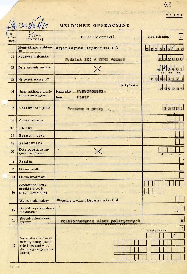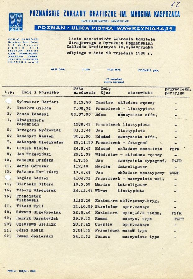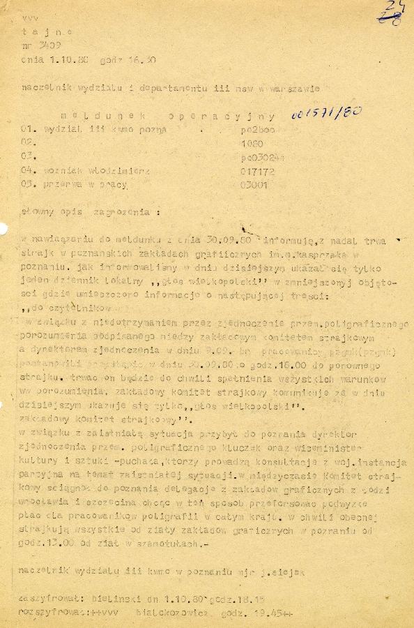 Dokumenty SB dotyczące strajku w dniu 29.08.1980 w Wielkopolskiej Fabryce Maszyn Elektrycznych - Wiefamel #1 Dokumenty SB dotyczące strajku w dniu 29.08.1980 w Wielkopolskiej Fabryce Maszyn Elektrycznych - Wiefamel #2 Dokumenty SB dotyczące strajku w dniu 29.08.1980 w Wielkopolskiej Fabryce Maszyn Elektrycznych - Wiefamel #3 Dokumenty SB dotyczące strajku w dniu 29.08.1980 w Wielkopolskiej Fabryce Maszyn Elektrycznych - Wiefamel #4 Dokumenty SB dotyczące strajku w dniu 29.08.1980 w Wielkopolskiej Fabryce Maszyn Elektrycznych - Wiefamel #5 Dokumenty SB dotyczące strajku w dniu 29.08.1980 w Wielkopolskiej Fabryce Maszyn Elektrycznych - Wiefamel #6 Dokumenty SB dotyczące strajku w dniu 29.08.1980 w Wielkopolskiej Fabryce Maszyn Elektrycznych - Wiefamel #7 Dokumenty dotyczące strajku w Poznańskich Zakładach Graficznych w dn. 8.09.1980 r. #1 Dokumenty dotyczące strajku w Poznańskich Zakładach Graficznych w dn. 8.09.1980 r. #2 Dokumenty dotyczące strajku w Poznańskich Zakładach Graficznych w dn. 8.09.1980 r. #3 Dokumenty dotyczące strajku w Poznańskich Zakładach Graficznych w dn. 8.09.1980 r. #4 Dokumenty dotyczące strajku w Poznańskich Zakładach Graficznych w dn. 8.09.1980 r. #5 Dokumenty dotyczące strajku w Poznańskich Zakładach Graficznych w dn. 8.09.1980 r. #6 Dokumenty dotyczące strajku w Poznańskich Zakładach Graficznych w dn. 8.09.1980 r. #7 Dokumenty dotyczące strajku w Poznańskich Zakładach Graficznych w dn. 8.09.1980 r. #8 Dokumenty dotyczące strajku w Poznańskich Zakładach Graficznych w dn. 8.09.1980 r. #9