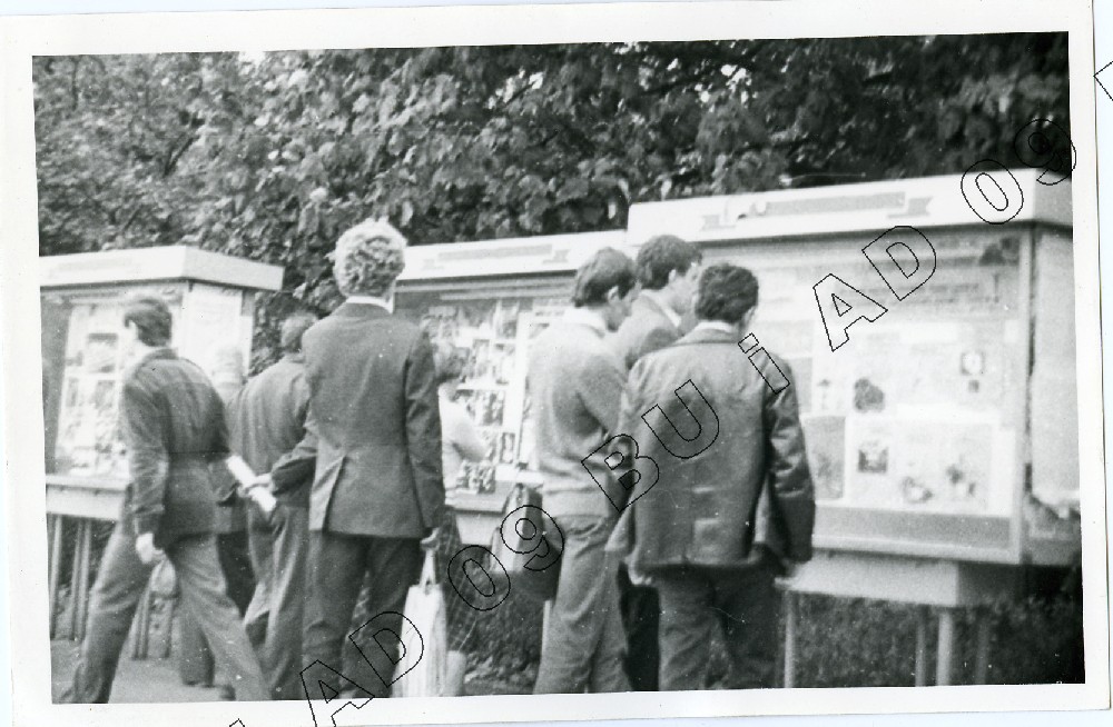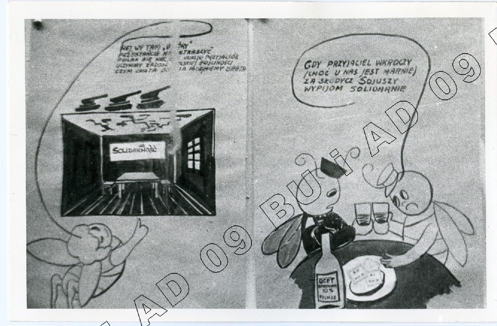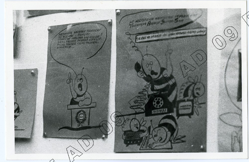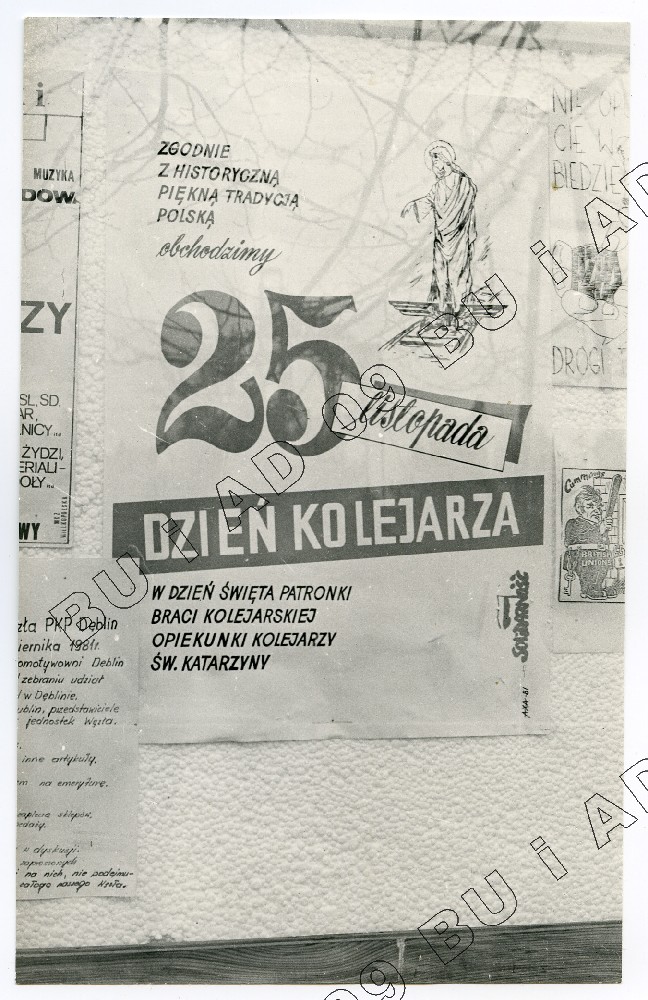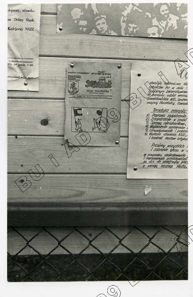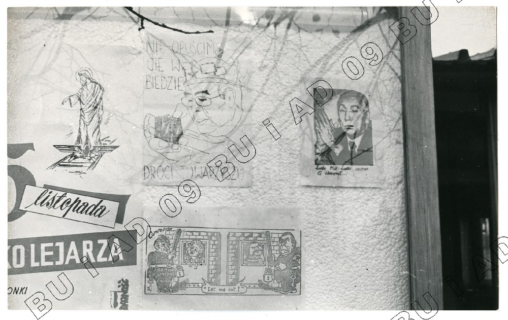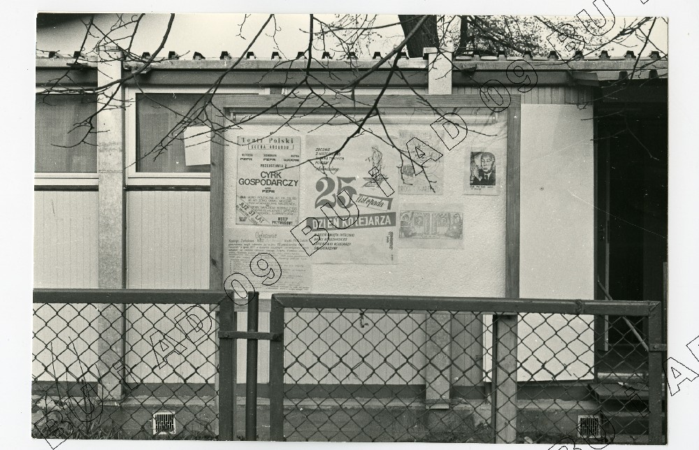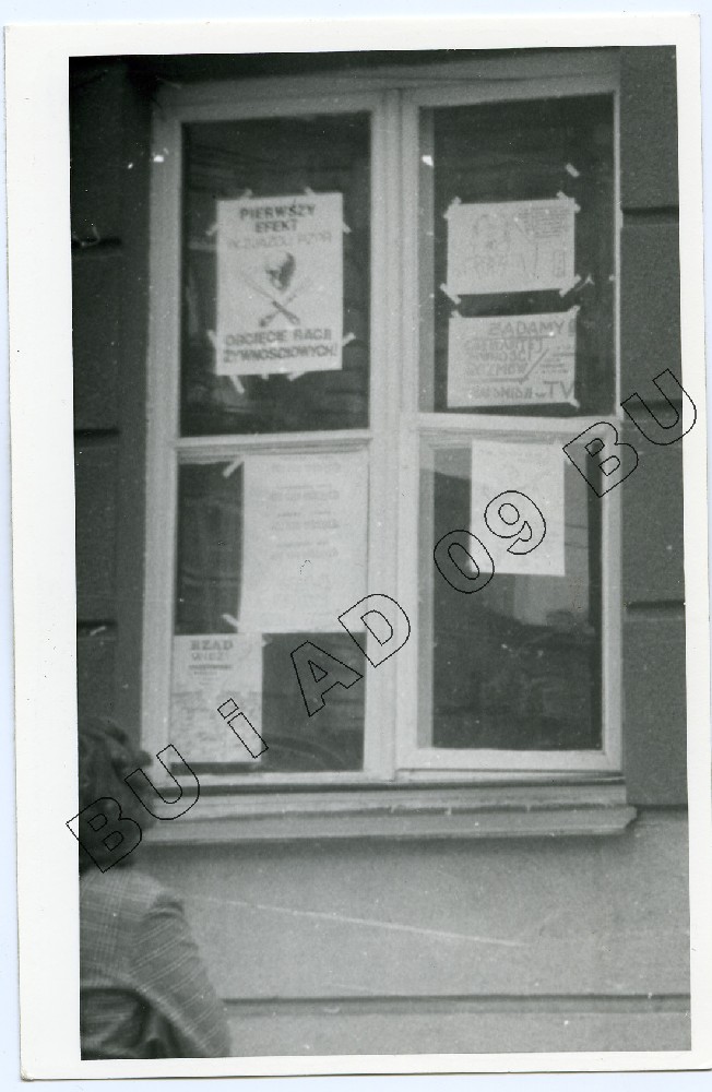 Fotografia (SB) plakatów wywieszanych na budynku Zarządu Regionu Środkowo-Wschodniego w Lublinie ul. Królewska